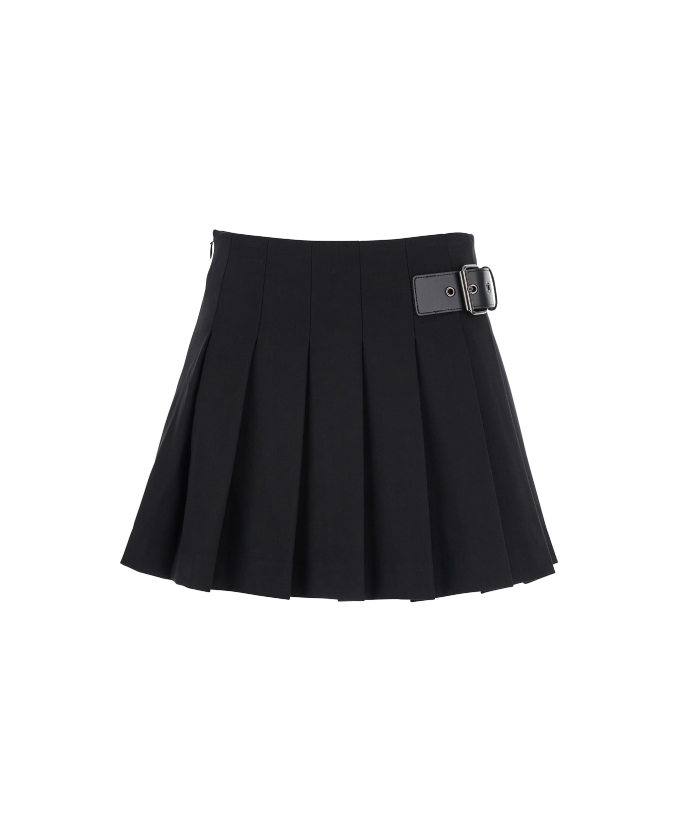 Black Skirt With Adjustable Side Belt And Pleated Details In Fabric Woman