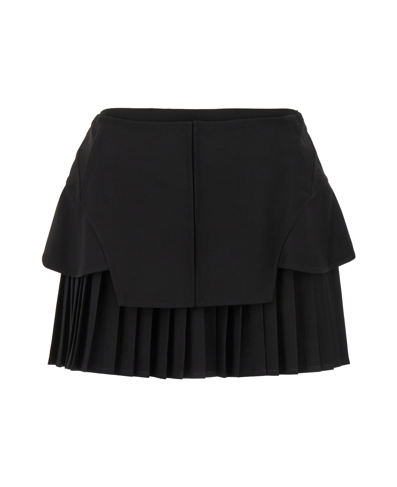 Pleated mini skirt realized in stretch polyester blend enriched by tonal fabric insert on the entire surface. -Concealed hooks closure at the front and concealed zip closure on the side