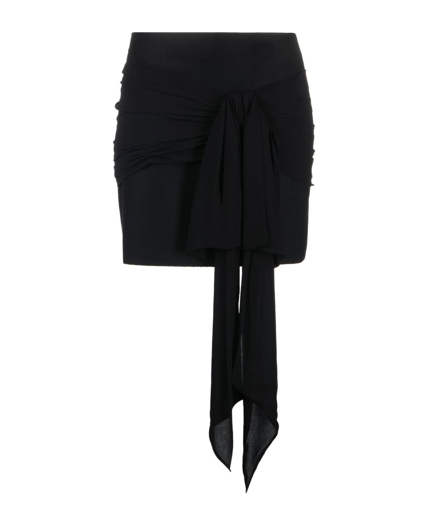 Black virgin wool-cashmere blend miniskirt, draped detailing, bow detailing, high waist, concealed fastening, straight hem Composition: Viscose, 100% , Virgin Wool, 70% , Polyamide, 20% , Cashmere, 10%