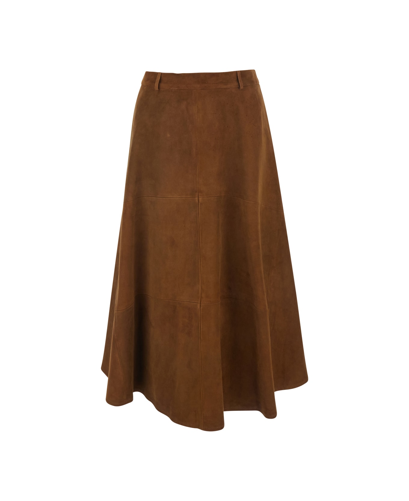 Skirt Brown Belt loops Rear zip closure Straight hem Flared design Suede Regular fit