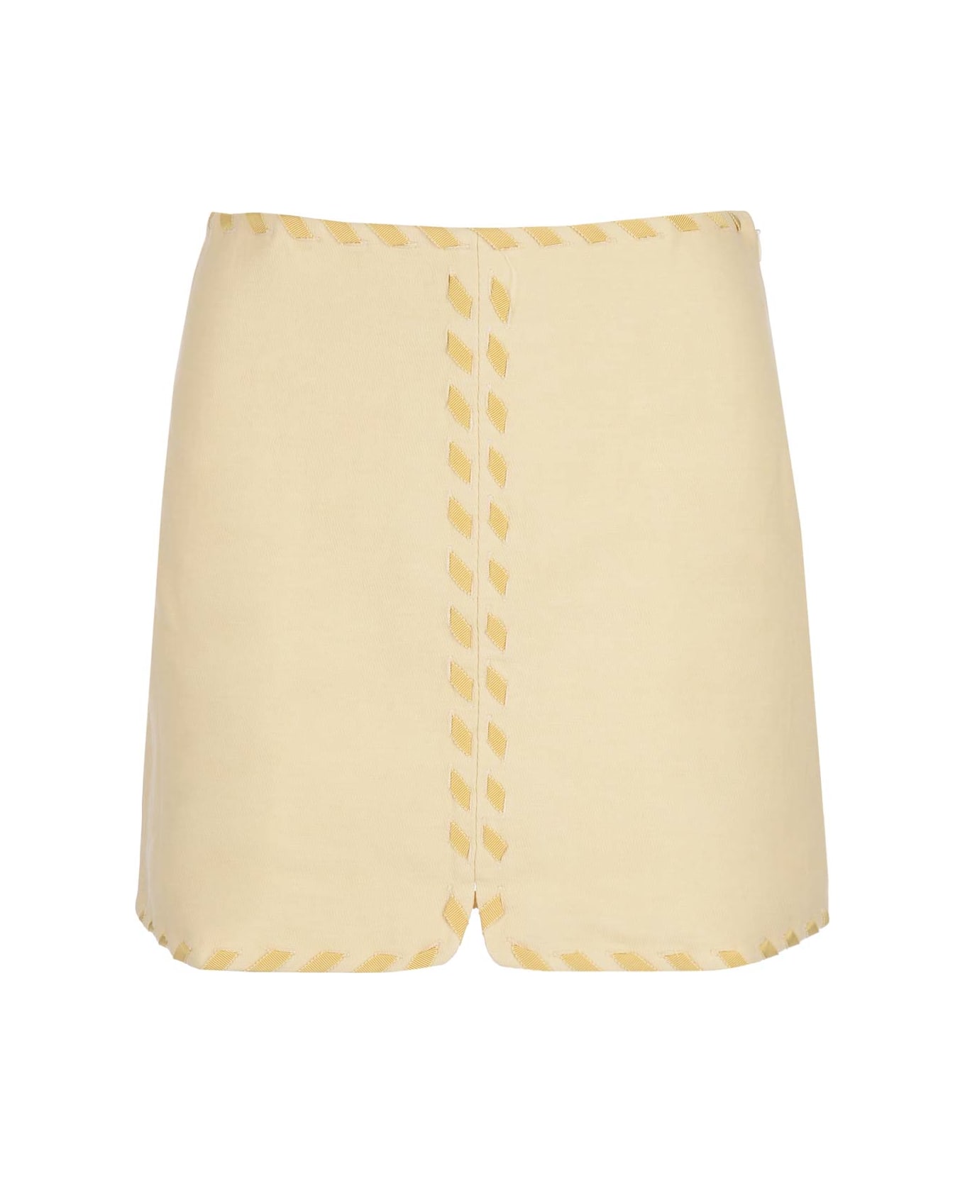 Pastel yellow cotton mini skirt with stitching detail and concealed zip from Rodebjer.