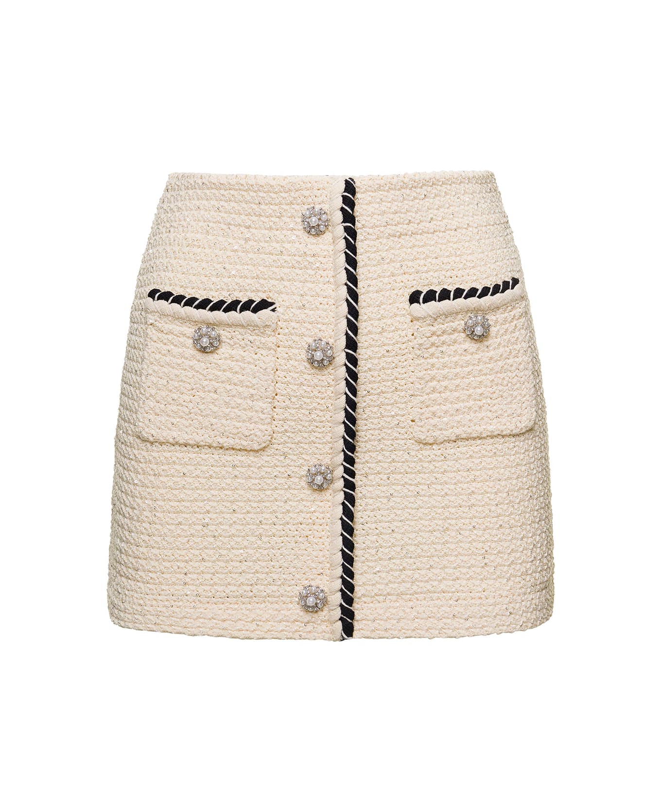 Cream Sequin Knitted Mini Skirt