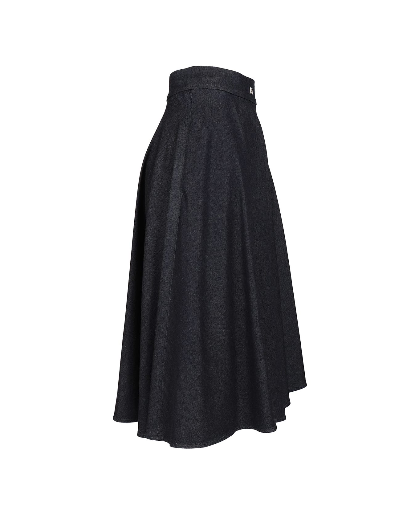 High-waisted cotton and silk denim midi skirt by Dolce & Gabbana with metal DG pin logo. Back zip fastening. Composition: 28%Cotone+02%Elastan+22%Modal+05%Seta+43%Cly Lyocell