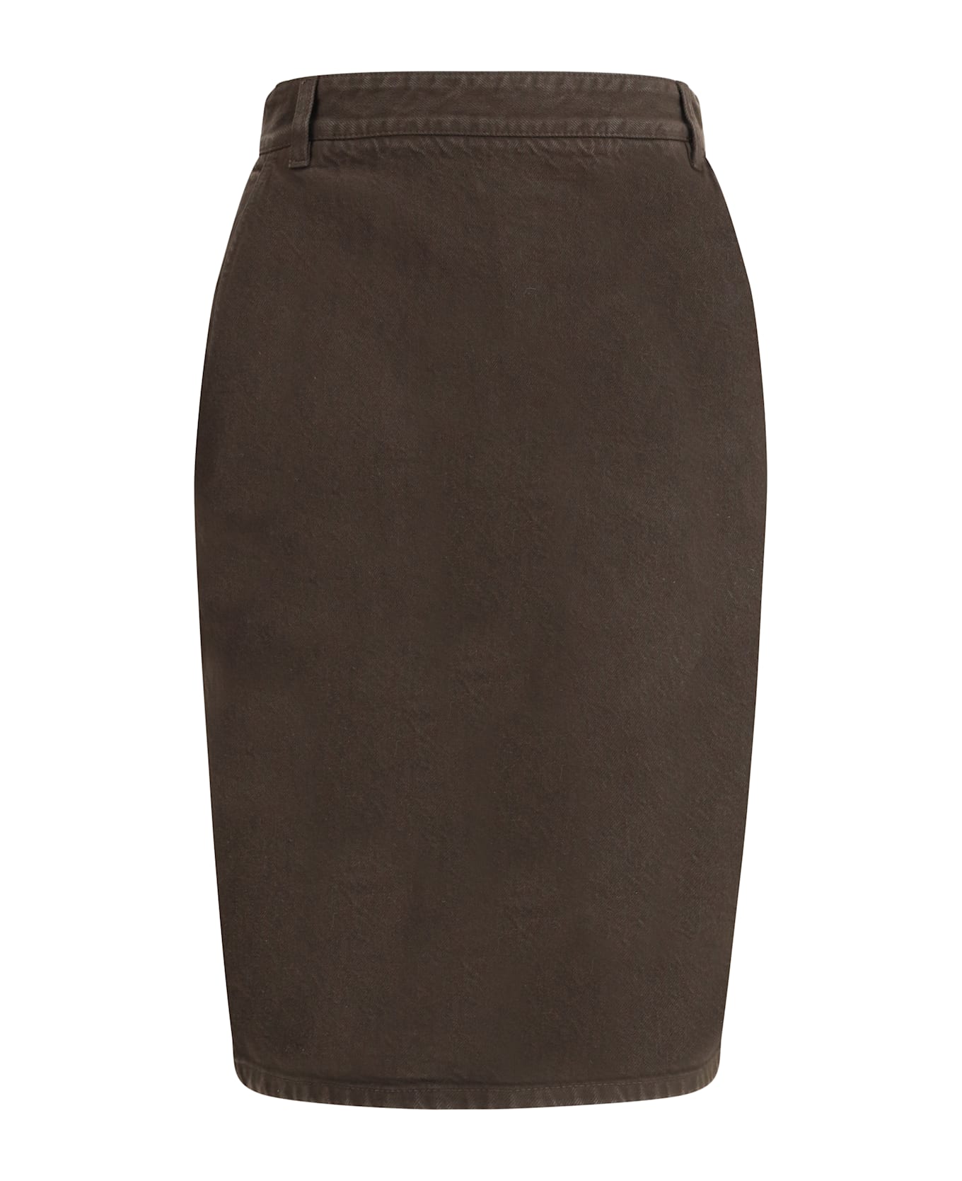 The denim pencil skirt by saint laurent combines practicality with contemporary style in an essential piece. crafted from certified cotton, it features a mid-rise waist with belt loops, a back vent for ease of movement, and a fitted silhouette that flatters the figure. the leather jacron embossed with saint laurent paris adds a distinctive, refined touch, making the skirt versatile for both casual and polished looks.
