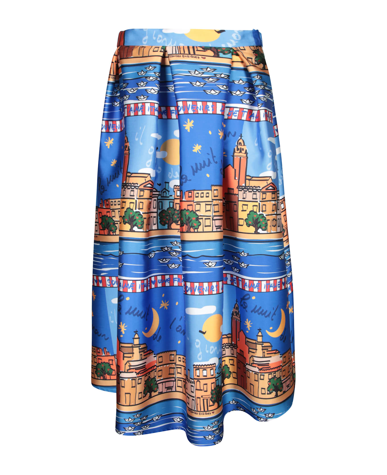 Explore the charm of a vibrant city by wearing this long skirt from Alessandro Enriquez. The detailed print evokes a colorful and lively urban scene, perfect for making a stylish statement on any occasion.
