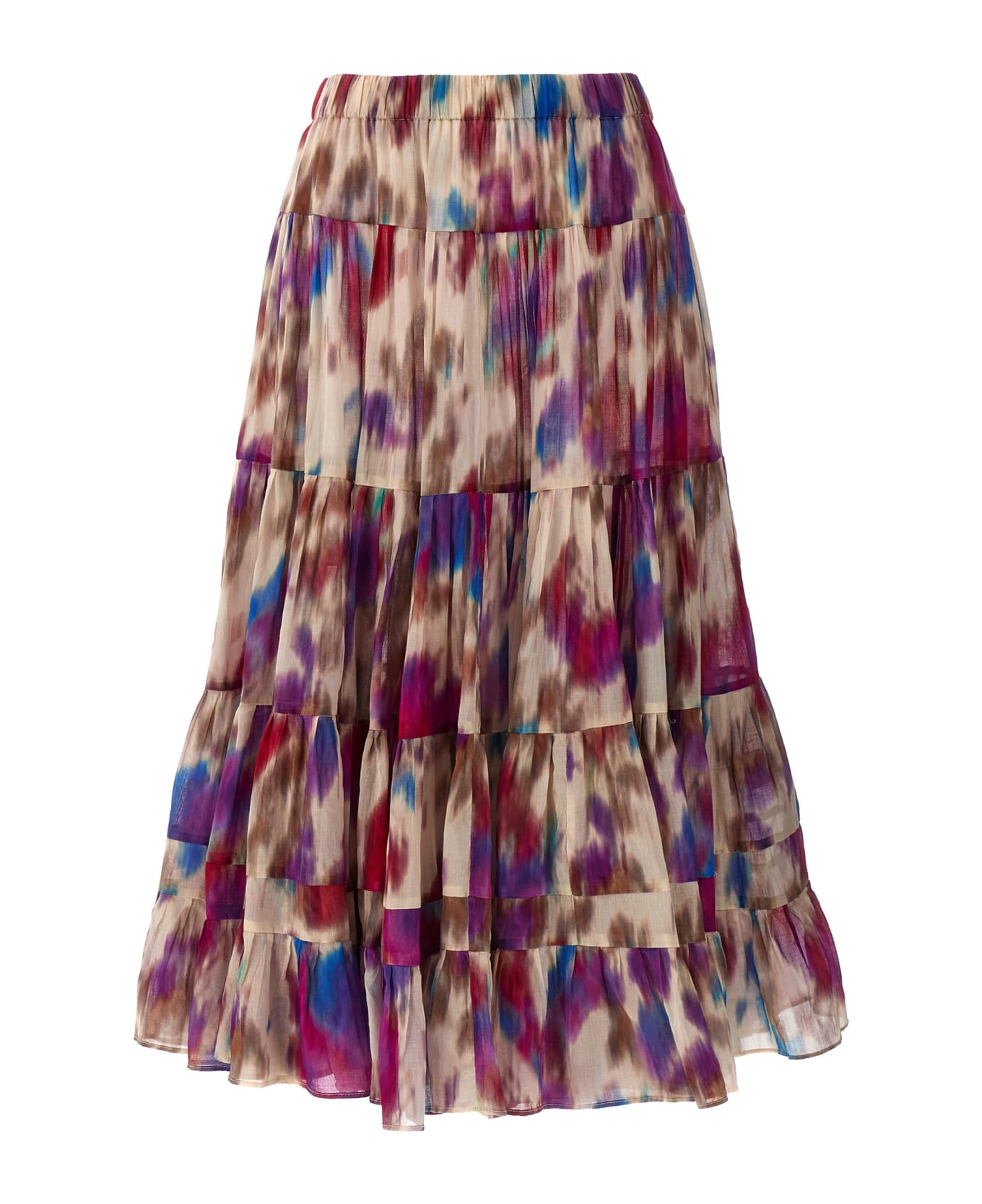'Elfa' midi skirt in flounced printed cotton with elastic waistband.