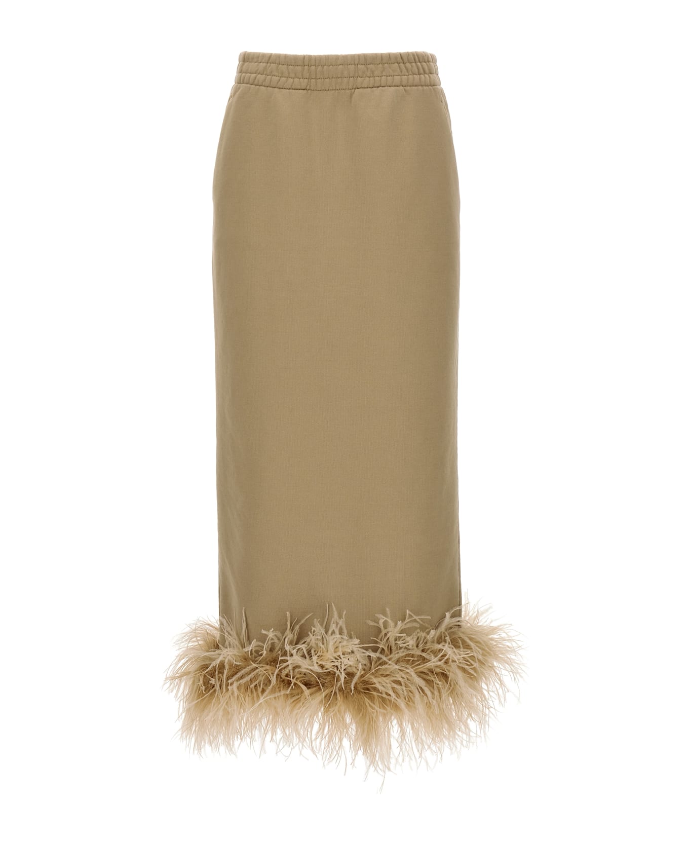 Cotton midi skirt with feather application on the hem, back split, elastic and drawstring at the waist, pockets, logo. Composition: 100% cotton