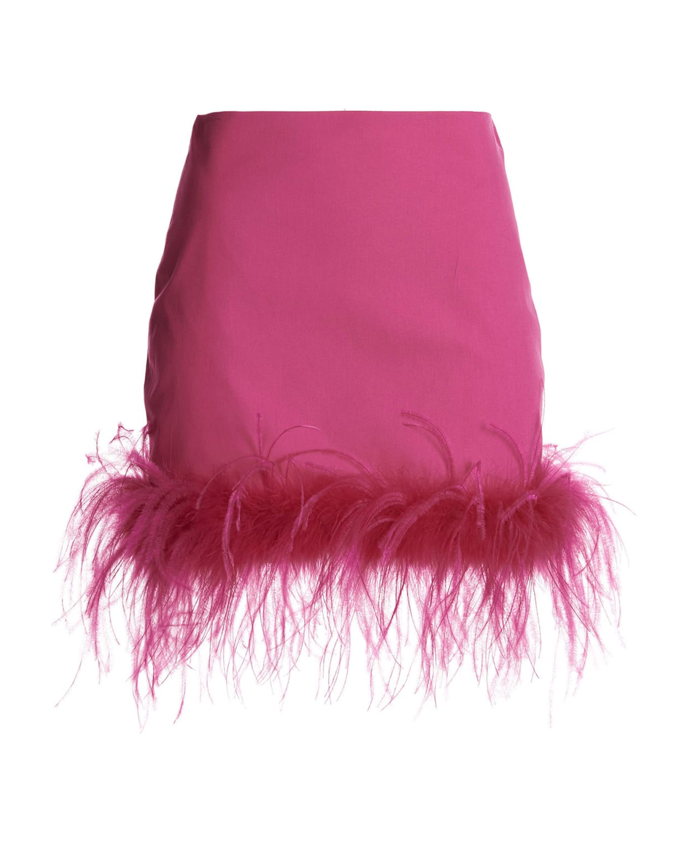 Embellished miniskirt with an ostrich feather hem. Featuring a high waist model.