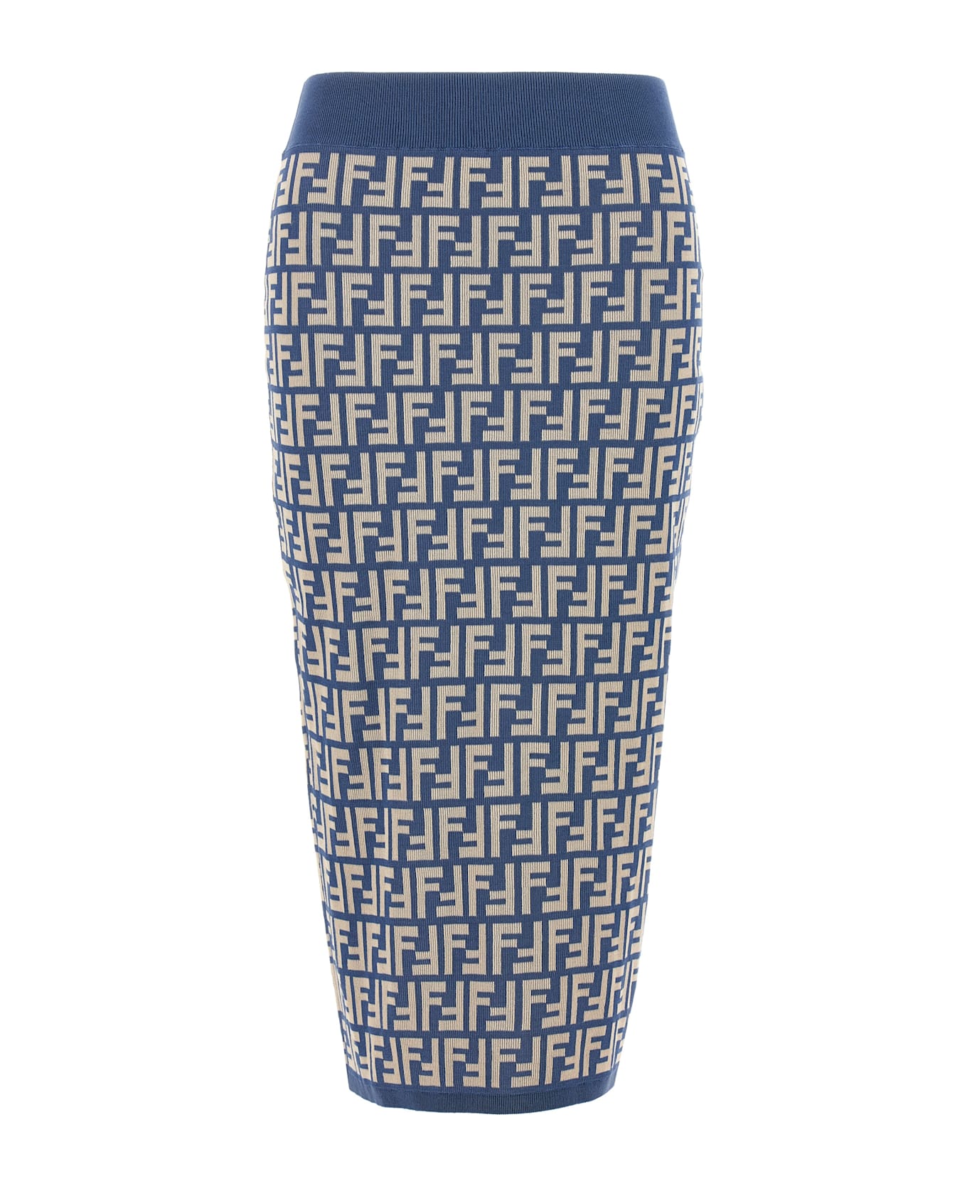 Midi skirt in jacquard cotton knit with iconic FF pattern and ribbed piping, elastic waistband. Composition: 80% cotton 16% polyamide 4% elastane
