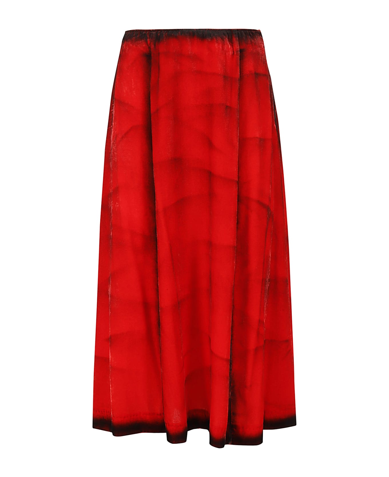 Flame skirt - Canvas - Red color - Shaded fluid velvet fabric - Flared design - Side zipper closure - Calf length - Regular fit