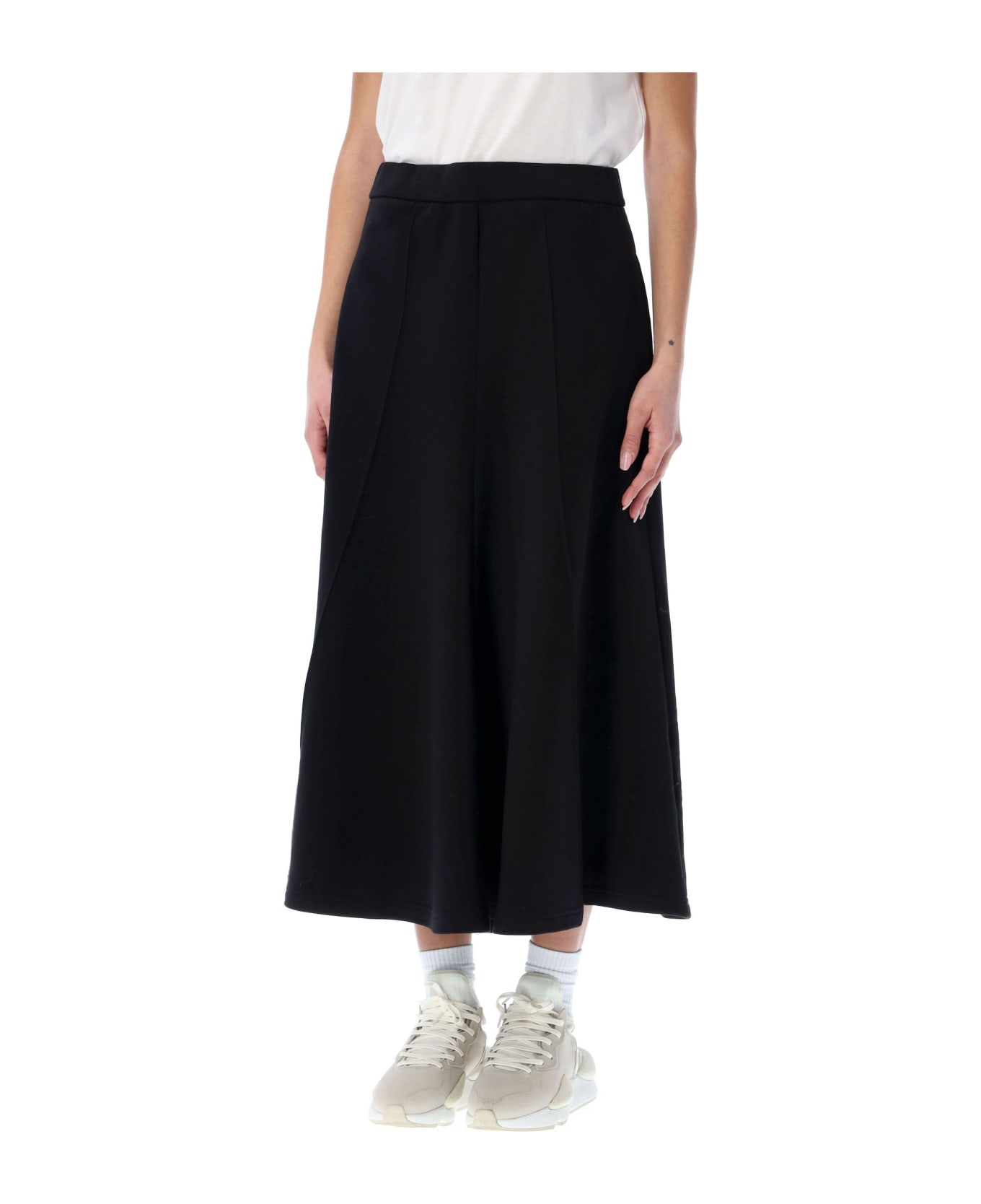 Black Cotton Flared High-waisted Skirt By Adidas Y-3. Featuring: - Flared Design - High-waisted - Inner Drawstring Waistband - Mid-length