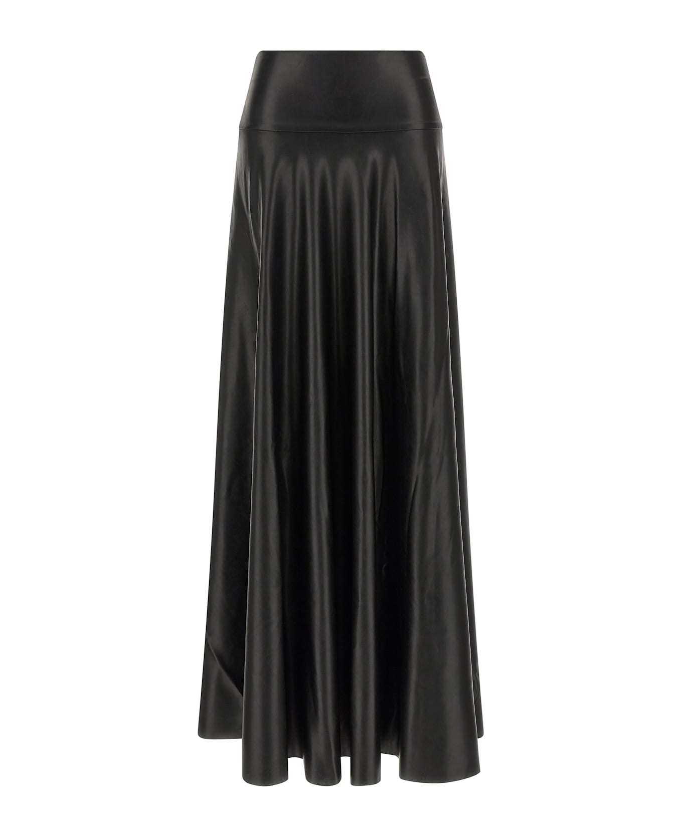 'Flared Skirt To Floor' maxi skirt in stretch leather-effect fabric, high waist and flared silhouette. Composition: 100% polyurethane