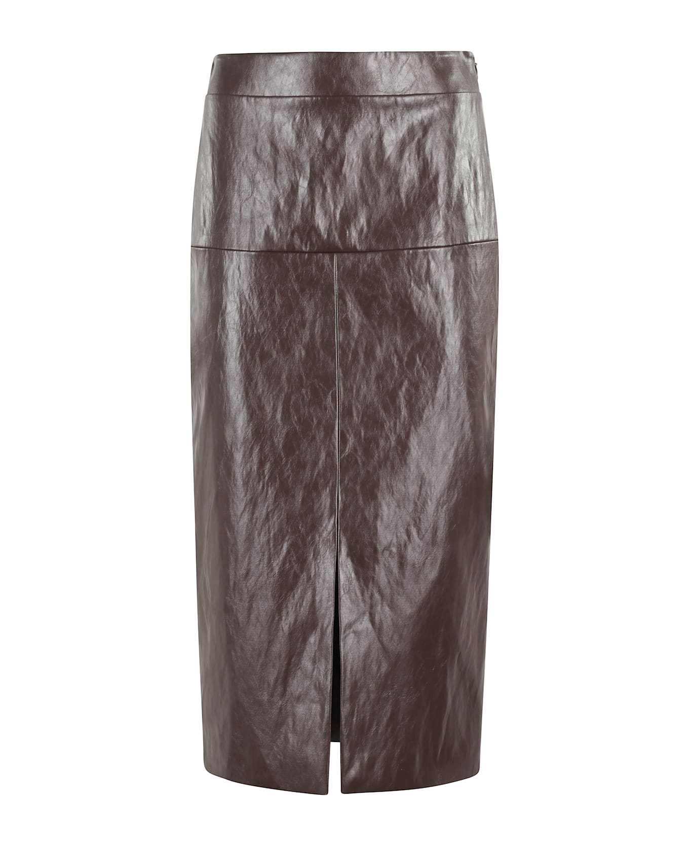 Skirt - Federica Tosi - Dark brown color - Faux leather fabric - Midi pattern - Front slit - Side zipper closure - Regular fit