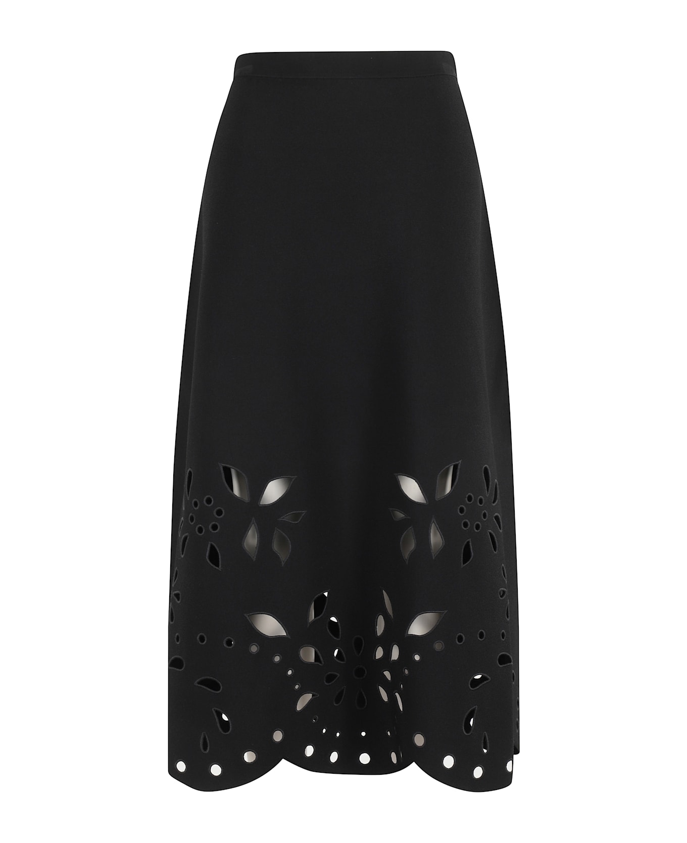Grace Midi Skirt -Ulla Johnson -Black color -Elastic waistband -Perforated at bottom