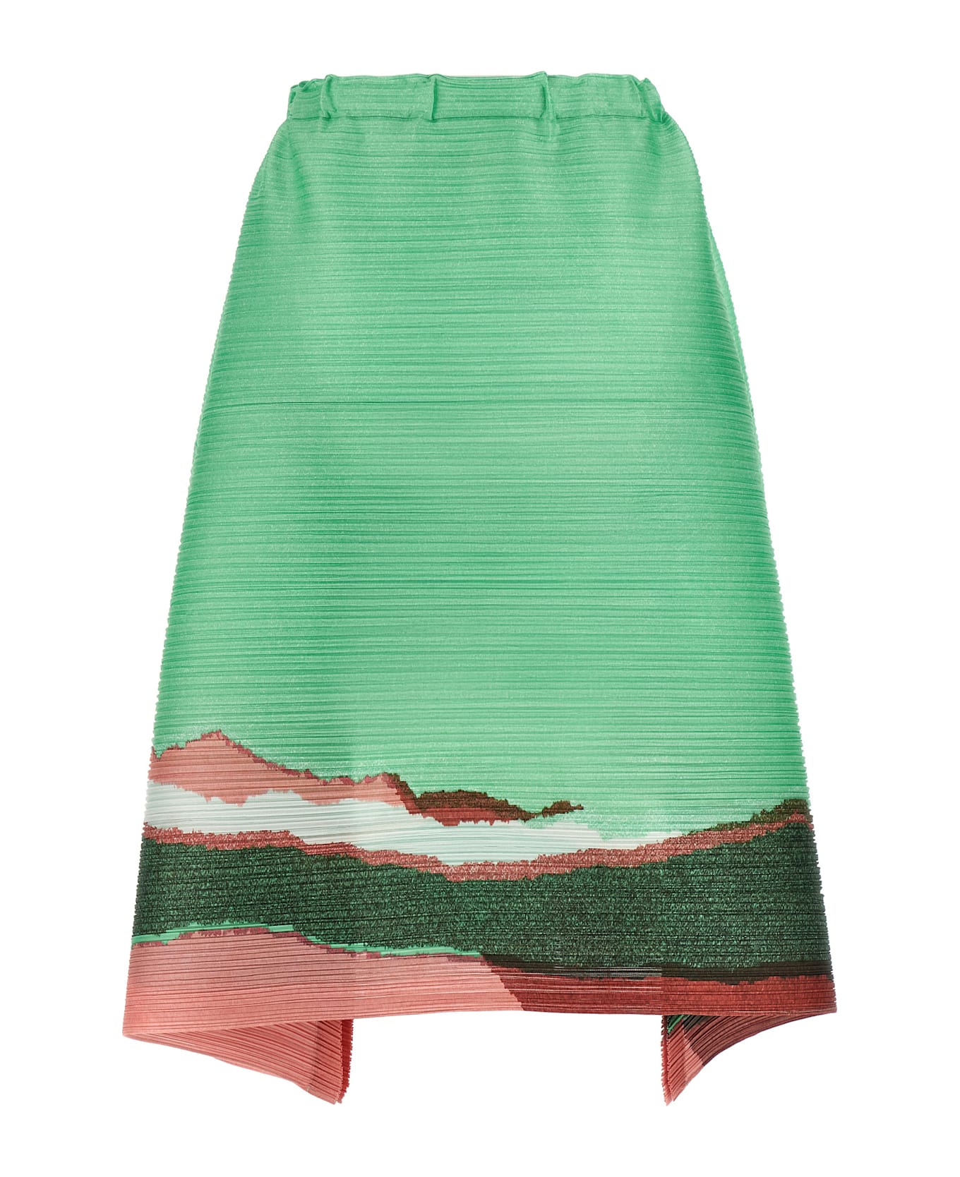 Grainy Colors' pleated midi skirt with print obtained using colored paper torn, cut and glued to evoke an effect of grainy light, elastic waistband, side slits with button closure. Composition: 100% polyester