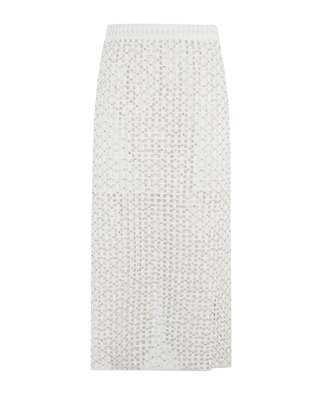 Handkerchief skirt - Essentiel Antwerp - White color - Mesh fabric with all-over beading - Regular waist - Sheath design with back slit - Removable shorts - Regular fit