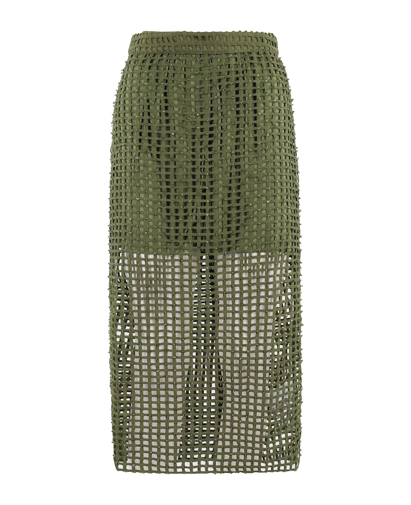 Handkerchief skirt - Essentiel Antwerp - Green color - Mesh fabric with all-over beading - Regular waist - Sheath design with back slit - Removable shorts - Regular fit