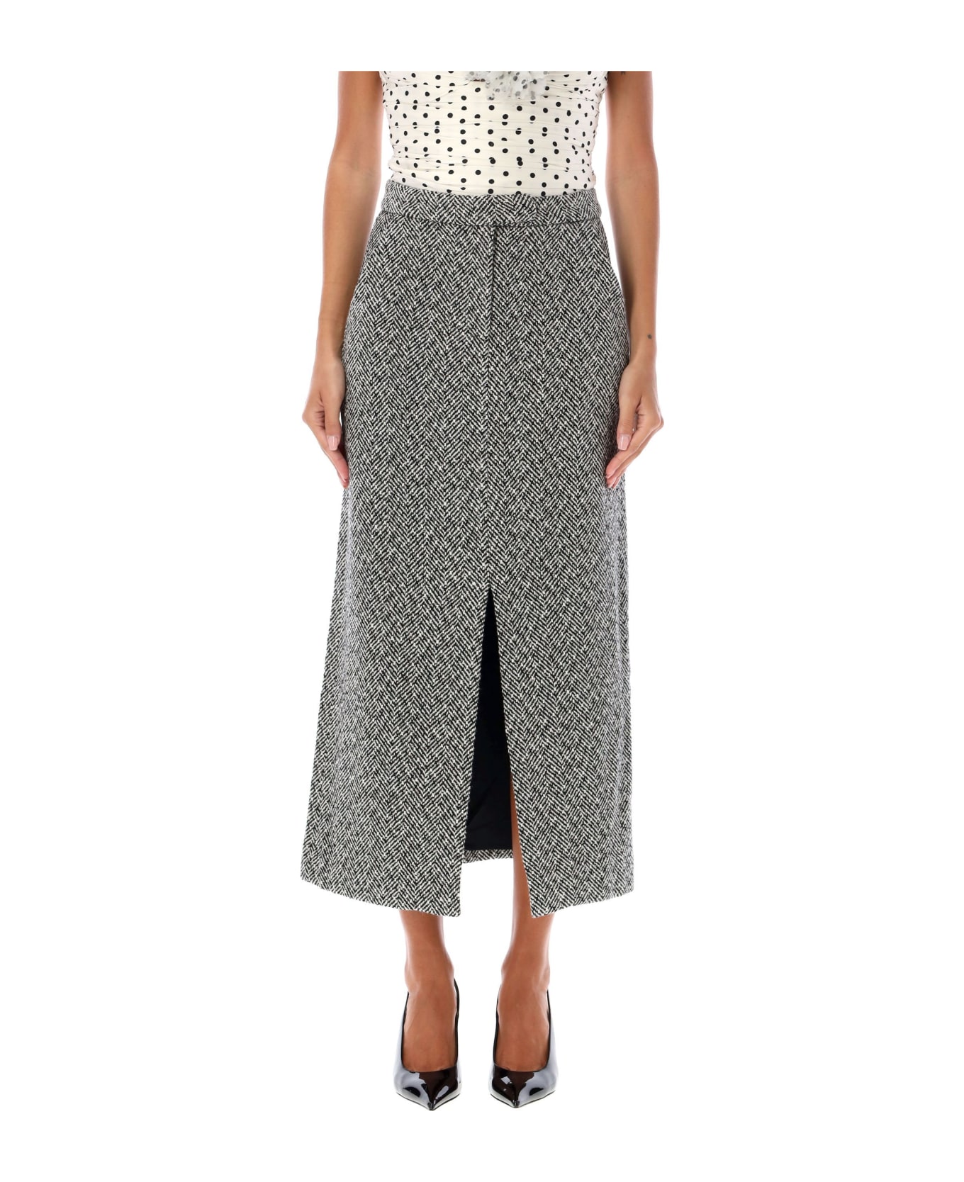 Herringbone Midi Skirt By Self Portrait. Featuring: Herringbone Fabric Sleek Pencil Skirt Silhouette Front Slit High-waisted Fit Flattering Shape Concealed Back Zipper Closure Model Is 1,72m And Wears Size 8.
