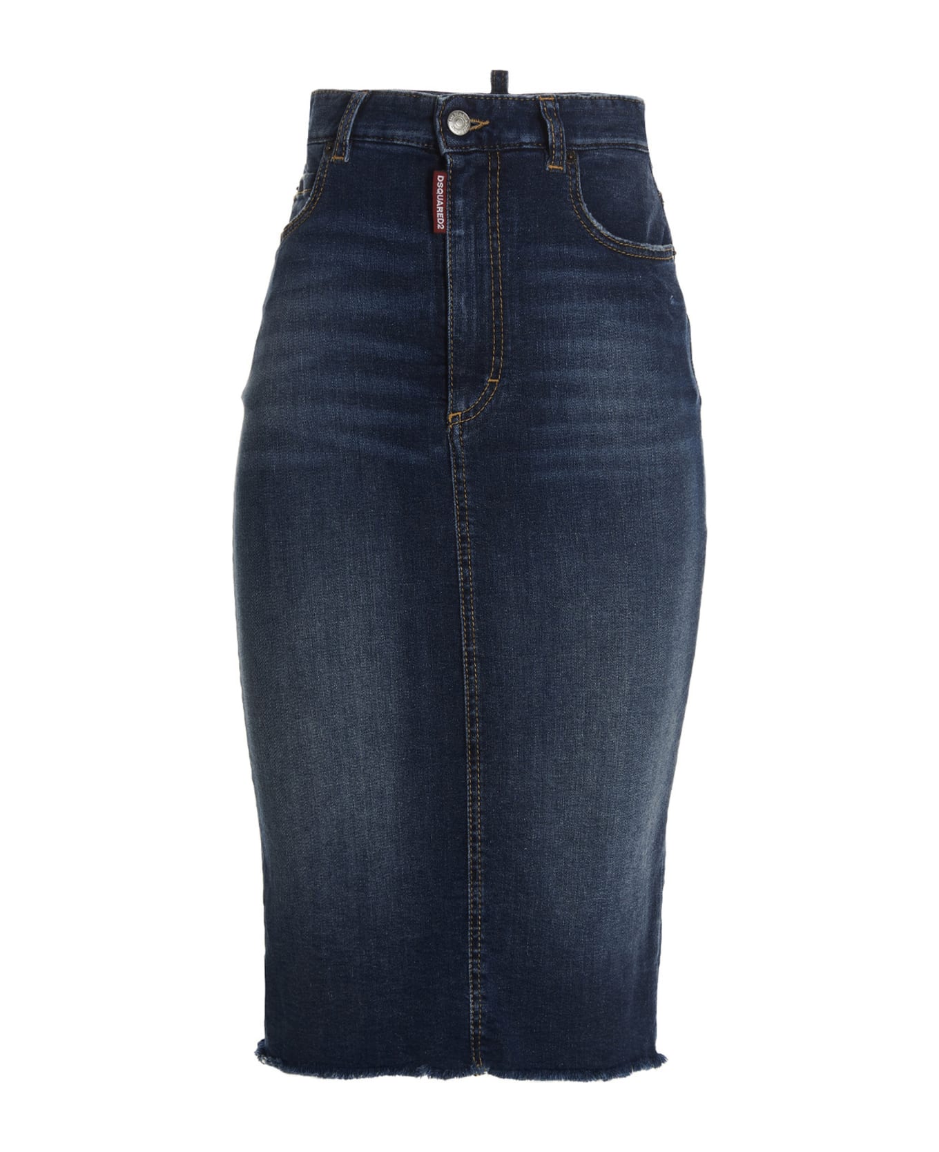 Honey midi' denim skirt featuring ripped detail and a frayed hem.