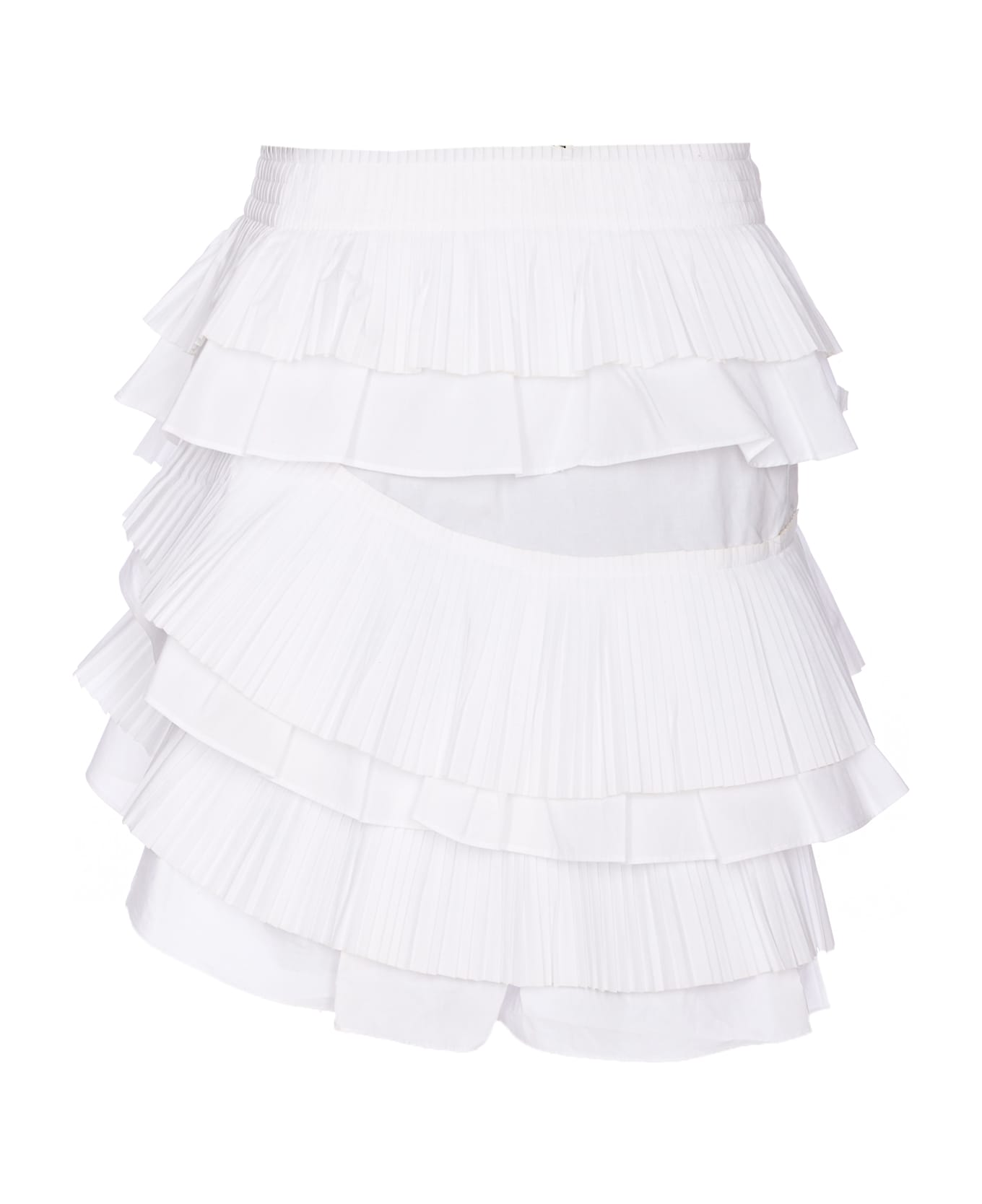 Essentiel Antwerp white pleated Hupaul skirt, lateral zip closure, mini model, rouches details