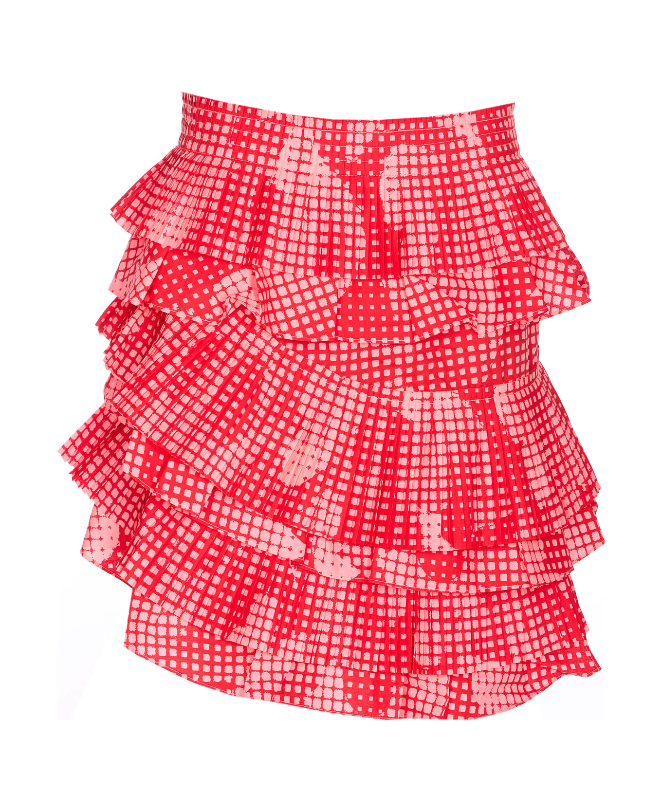Essentiel Antwerp calypso pink Hupaul ruffle mini skirt, lateral zip and hook closure, check motif