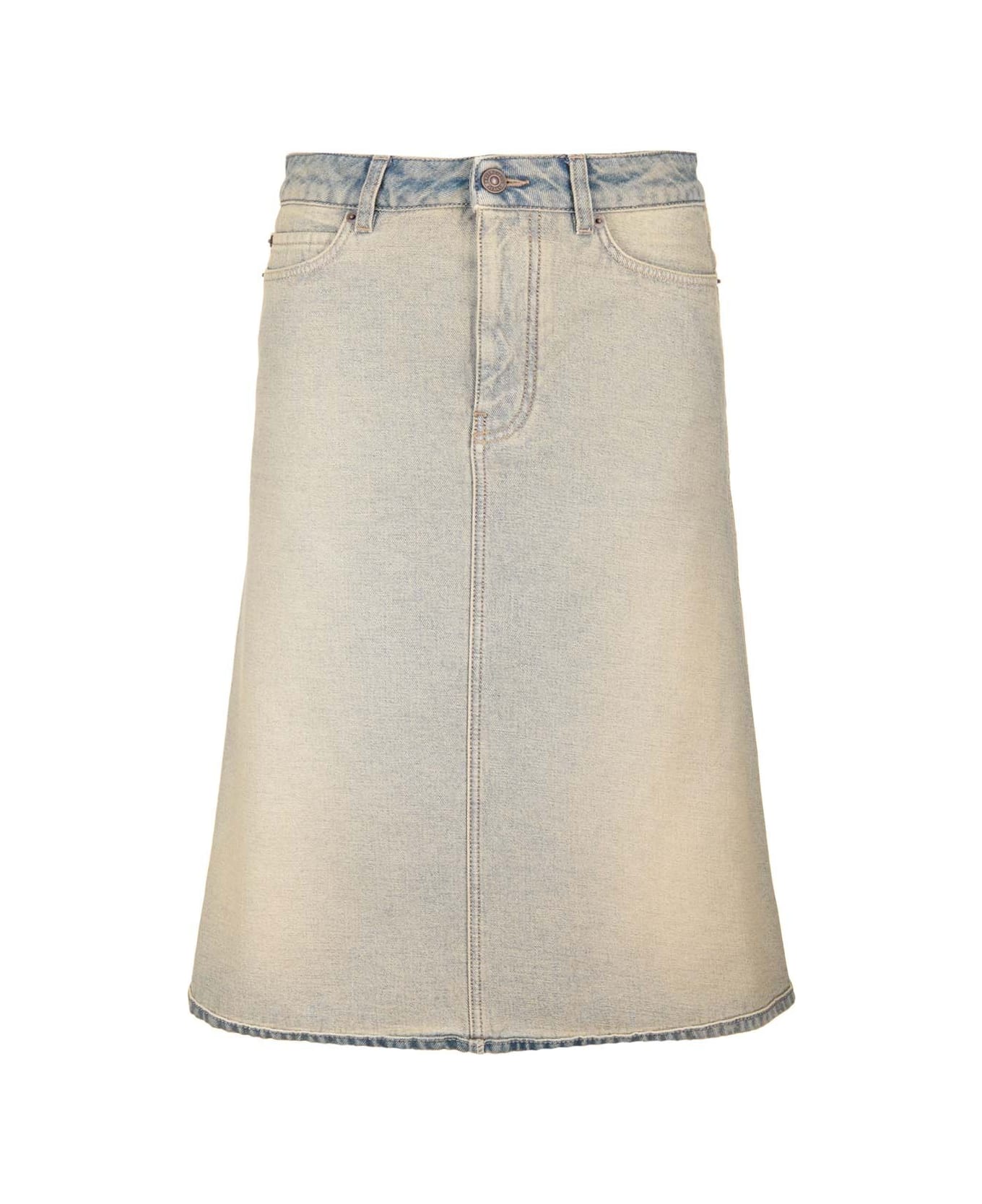 "Inside-Out" midi skirt from Balenciaga in vintage effect jeans, flared line, regular fit. Composition: 4209 INSIDE OUT T COTTON 100% FP POLYESTER65% FP COTTON35%