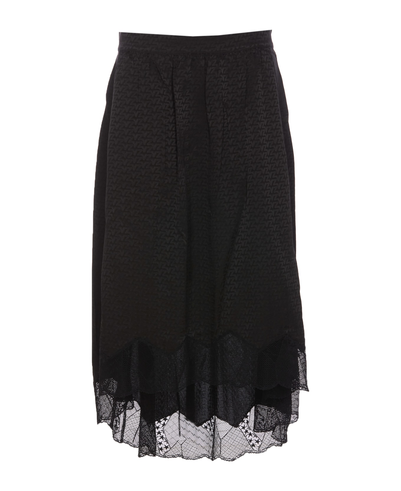Zadig&Voltaire black Joslin Jac skirt, high waist, all over tone on tone logo, asymmetrical model with lace details at bottom Composition: 100% Silk, 74% Polyamide, 26% Elastane Composition: 100 Af