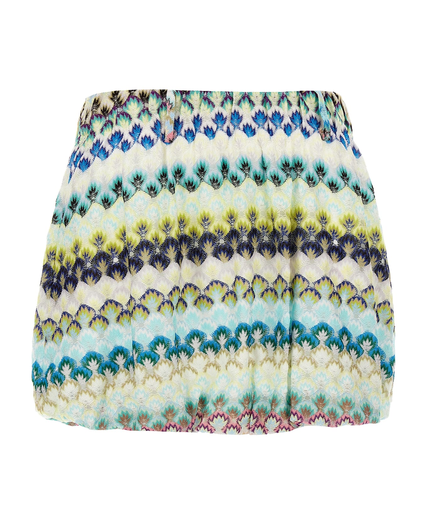 Mini skirt in degradé lace effect knitted viscose, balloon model, pockets, side zip closure.