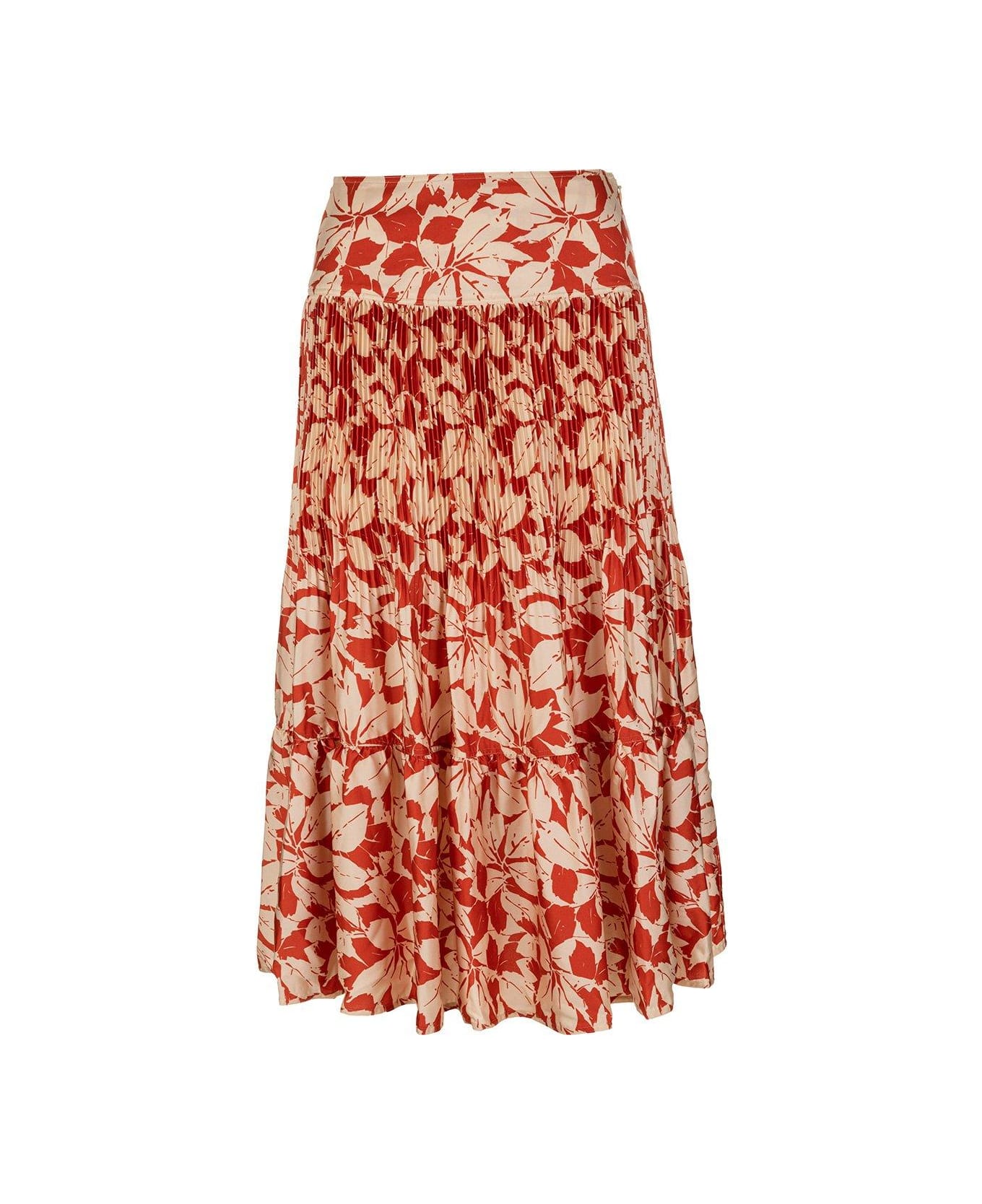 Leaf Printed Pleated Skirt