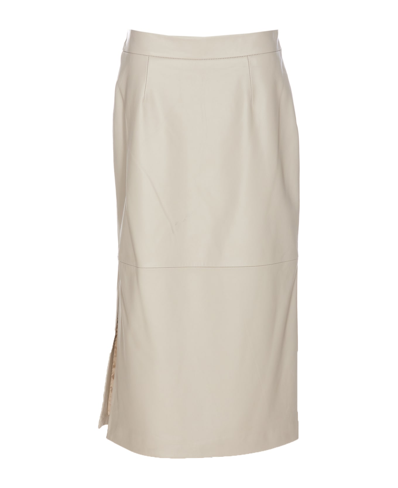 Arma white leather Instabul midi skirt, frontal split, zip closure on the back, high waist