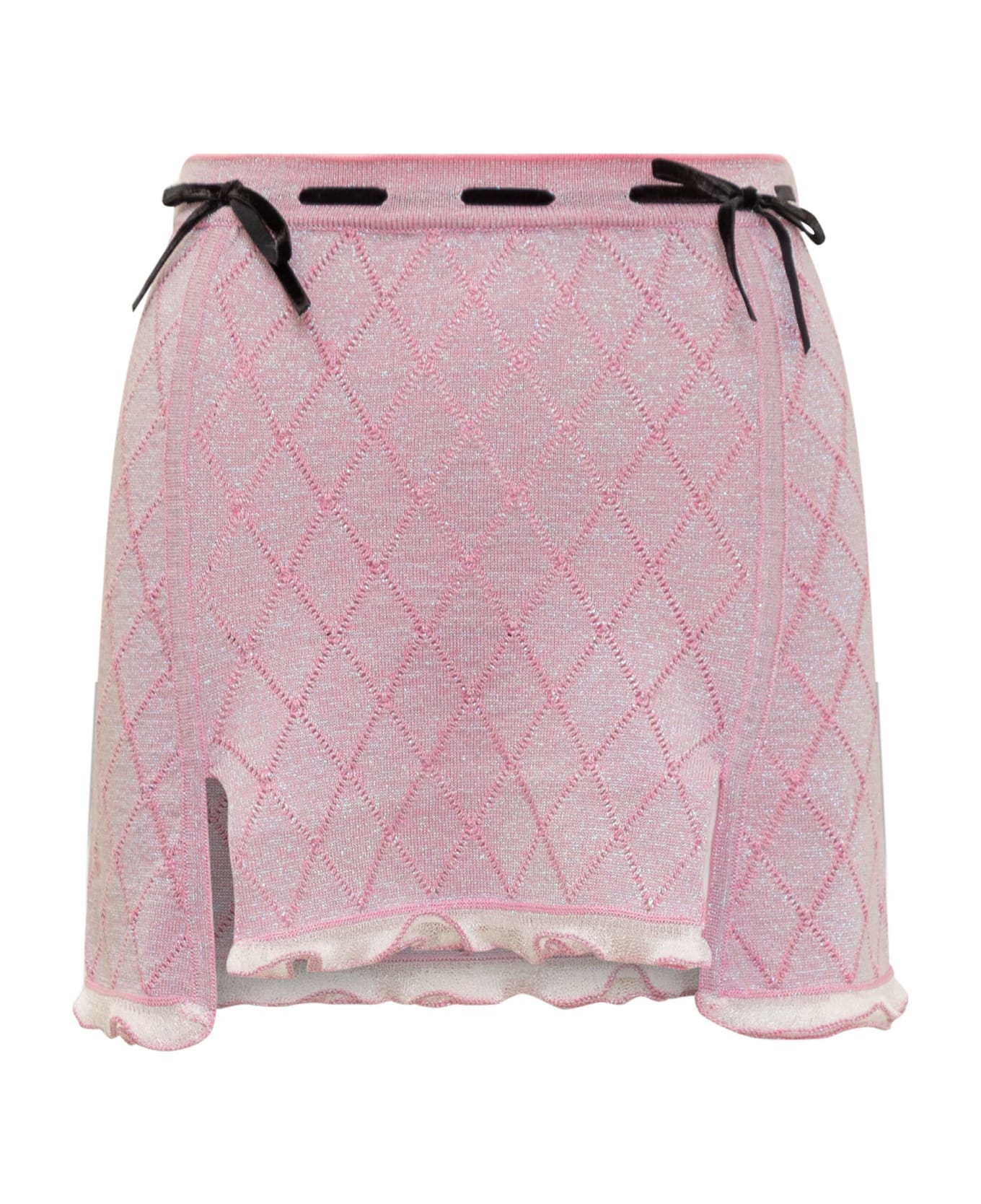 Miniskirt. Elasticated waist. Drawstring with bows at the waist. Irregular cut hem. All-over embroidered geometric pattern.