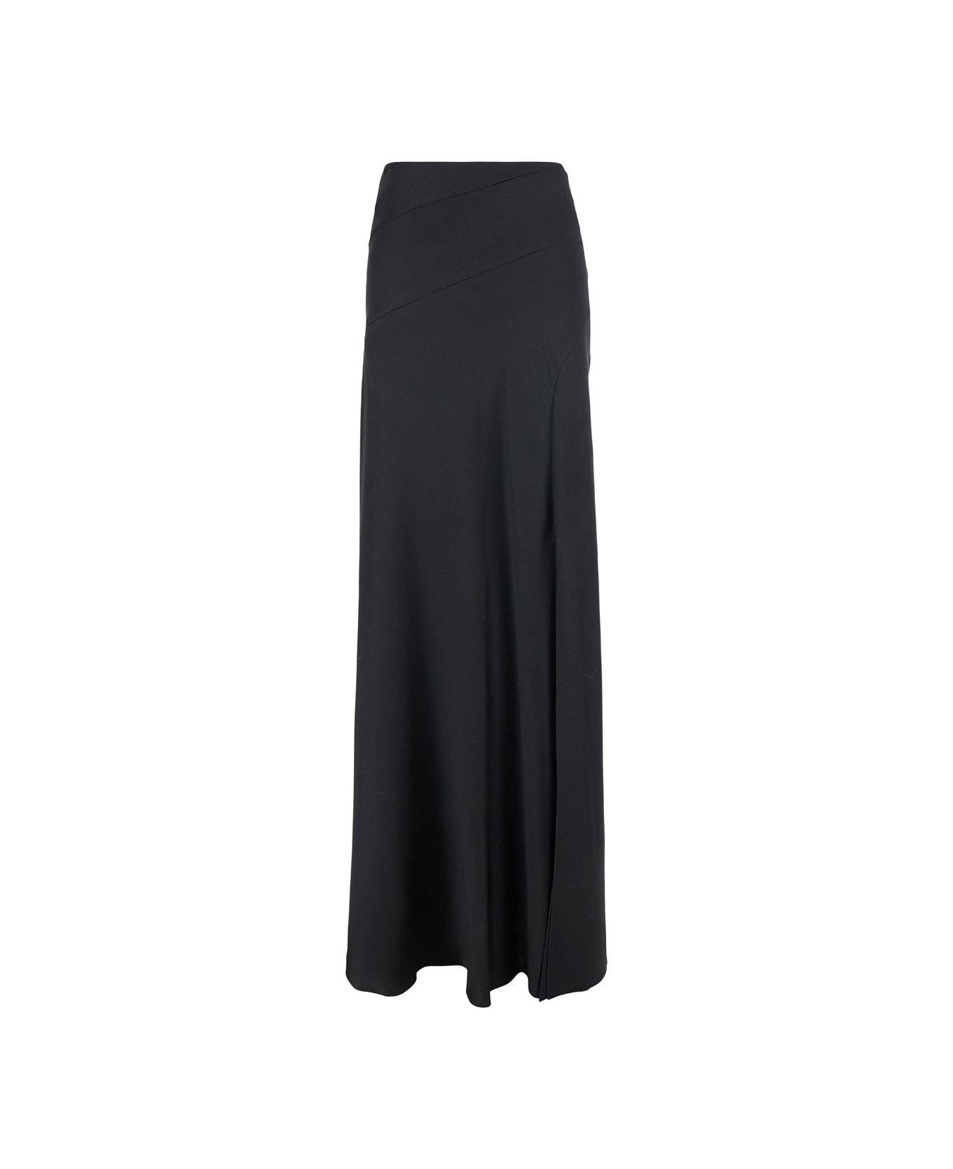 Long Relaxed Black Skirt In Silk Blend Woman