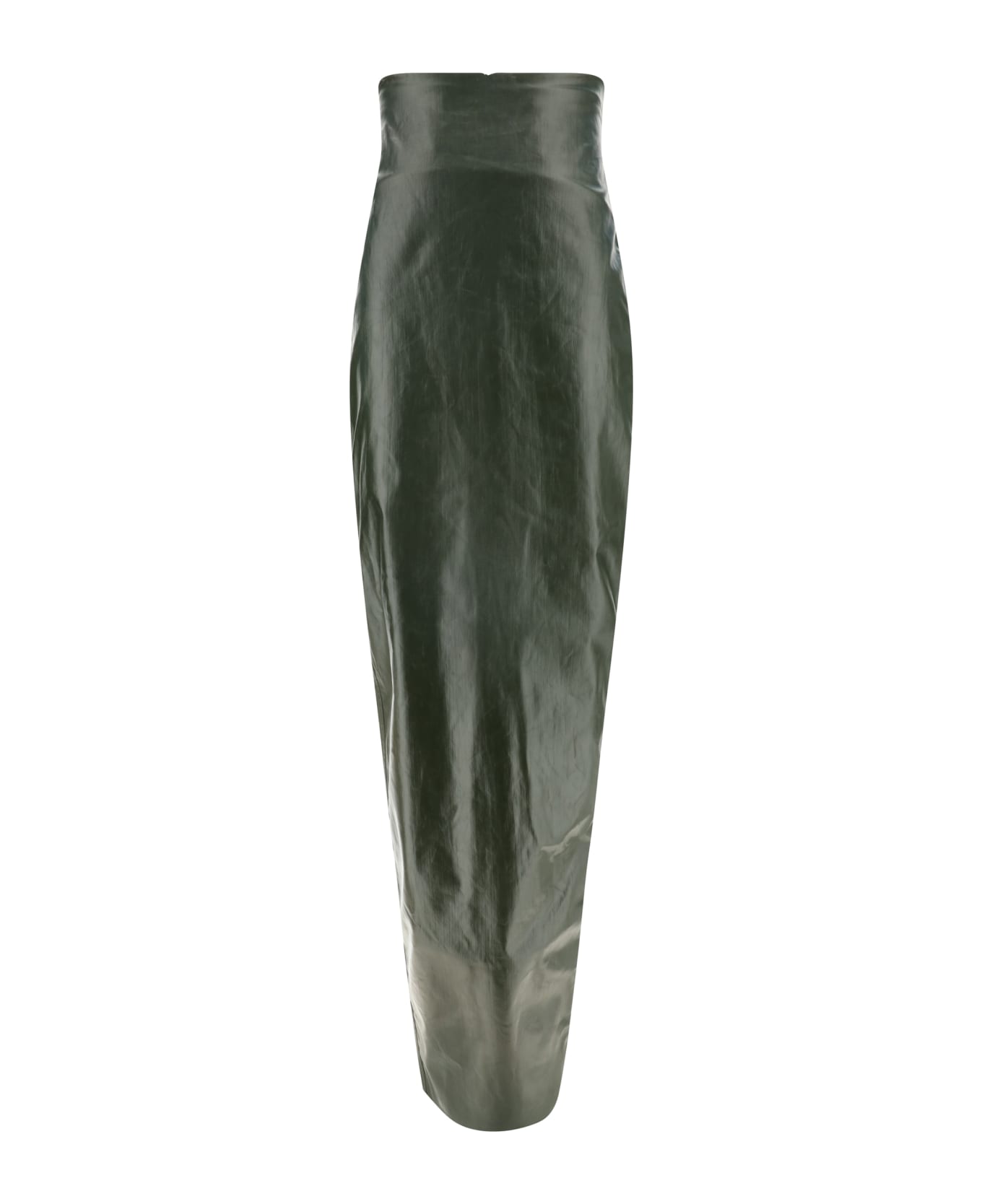 Long skirt by rick owens, high-waisted design, fitted waist with back zipper closure, wide back slit, coated cotton design. Composition: 91% % Cotton, 9% % Polyester