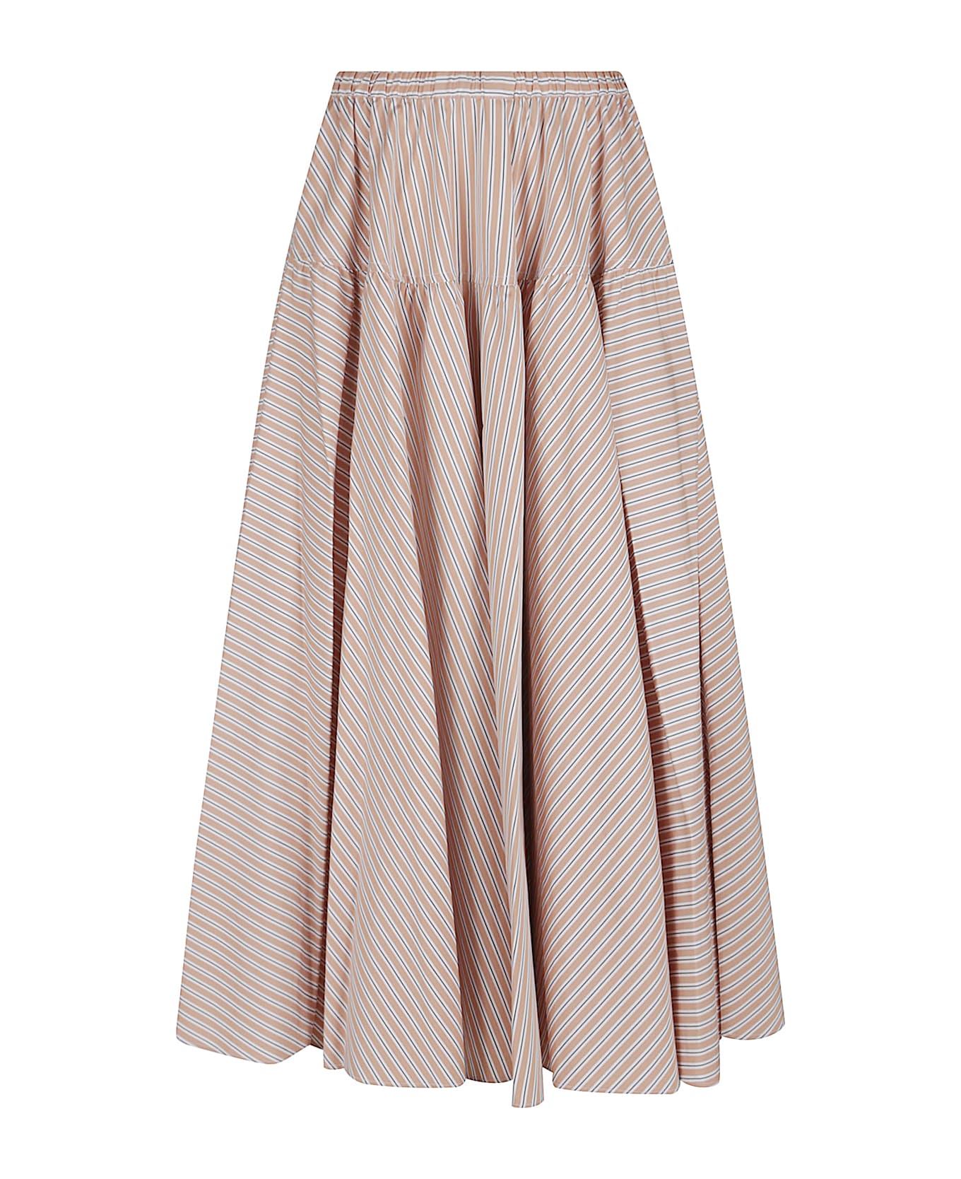 Cotton poplin skirt by PATOU. Elasticated waist with grosgrain drawstring; side pockets; ankle length design. Features a striped pattern and ruffle construction.