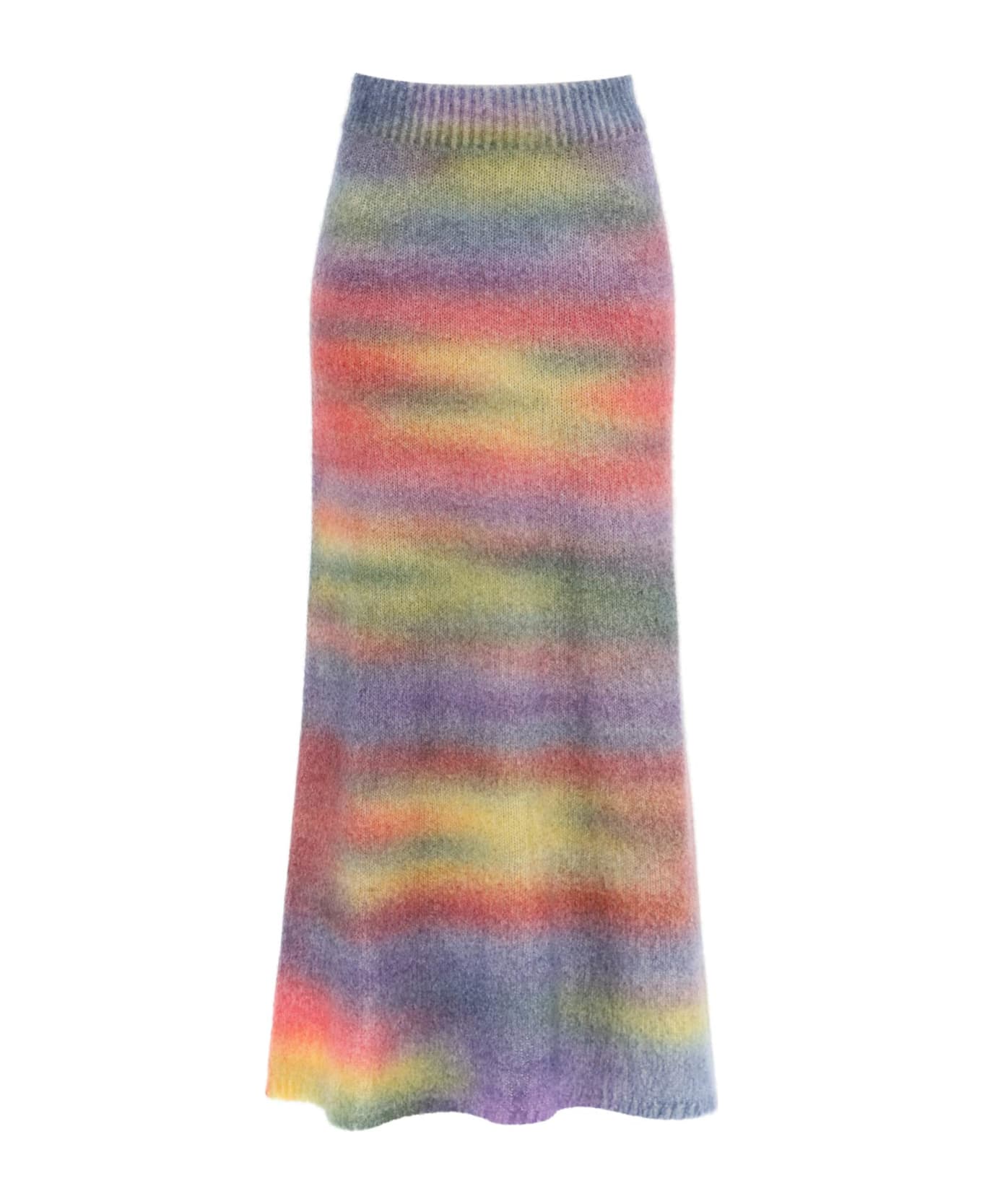 Canessa Cashmere straight-cut long skirt made of soft cashmere and silk knit with multicolored gradient print. It features elasticated waistband and wide side slit. Loose fit. The model is 177 cm tall and wears a size 1.