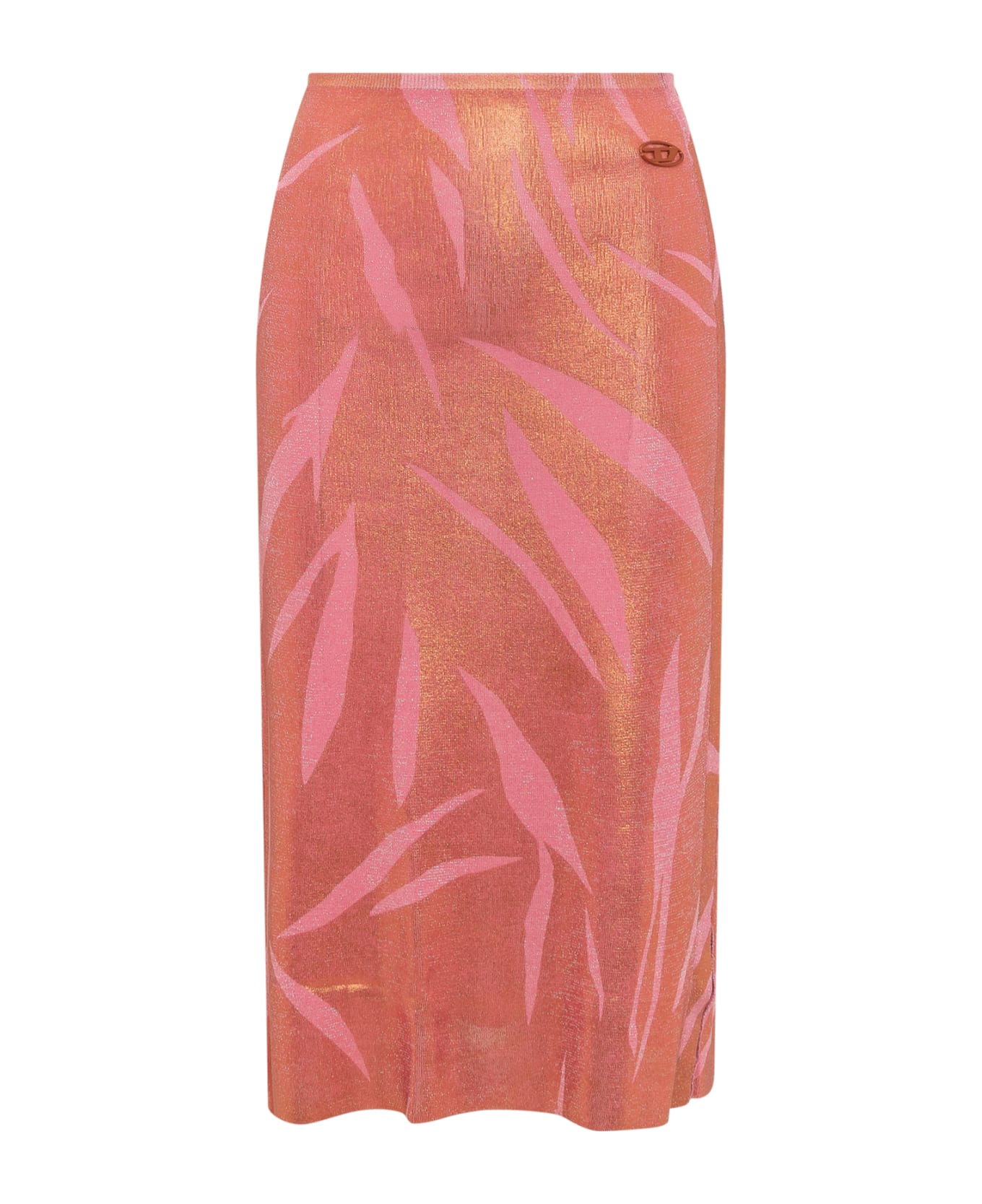 Long skirt. Internal side hooks on the closure. Two-tone all-over metallic cut-out effect. Laminate effect. Embossed logo on the front. Composition: 80% Acetate, 10% Polyamide, 10% Fibra Metallizzata