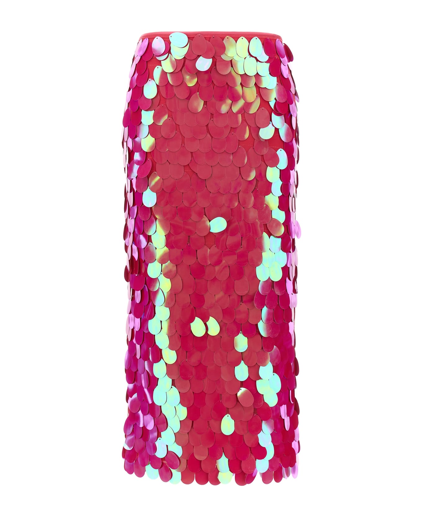 Midi skirt with maxi sequins, invisible zip closure, split at the back.