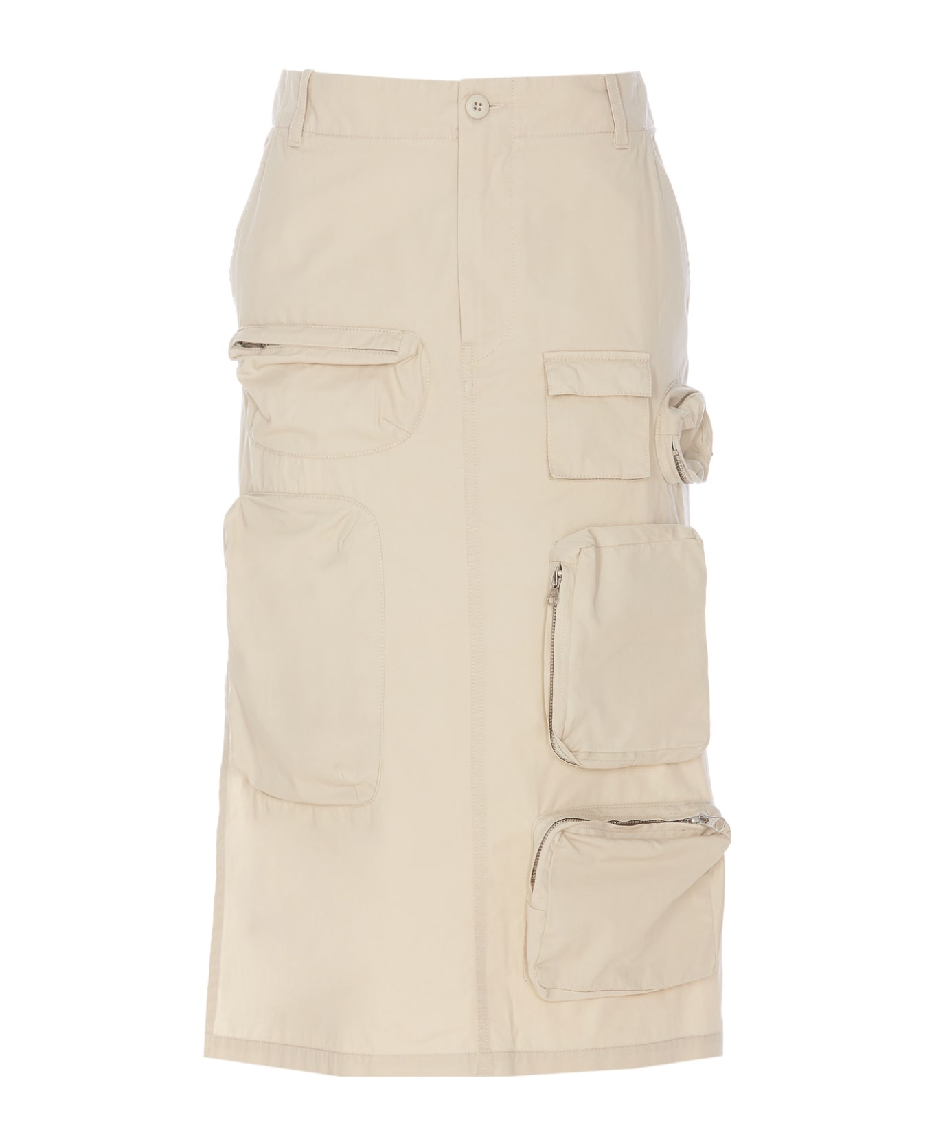 MM6 Maison Margiela beige midi skirt, zip and button closure, lateral pockets, frontal pockets with zip closure, lateral split on side Composition: 100% Cotton