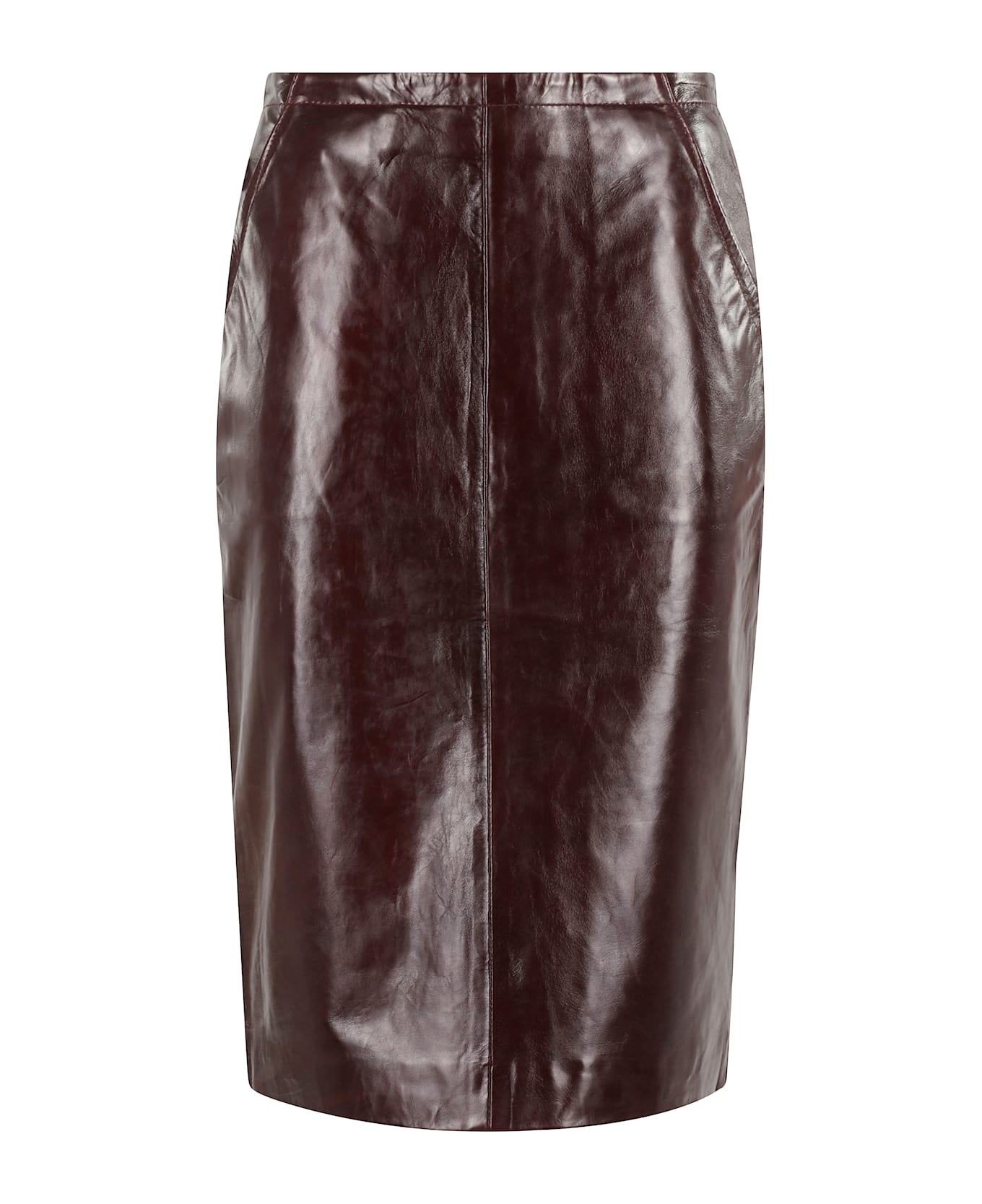 Midi skirt -Remain -Burgundy color -Zip closure at back -Split at back