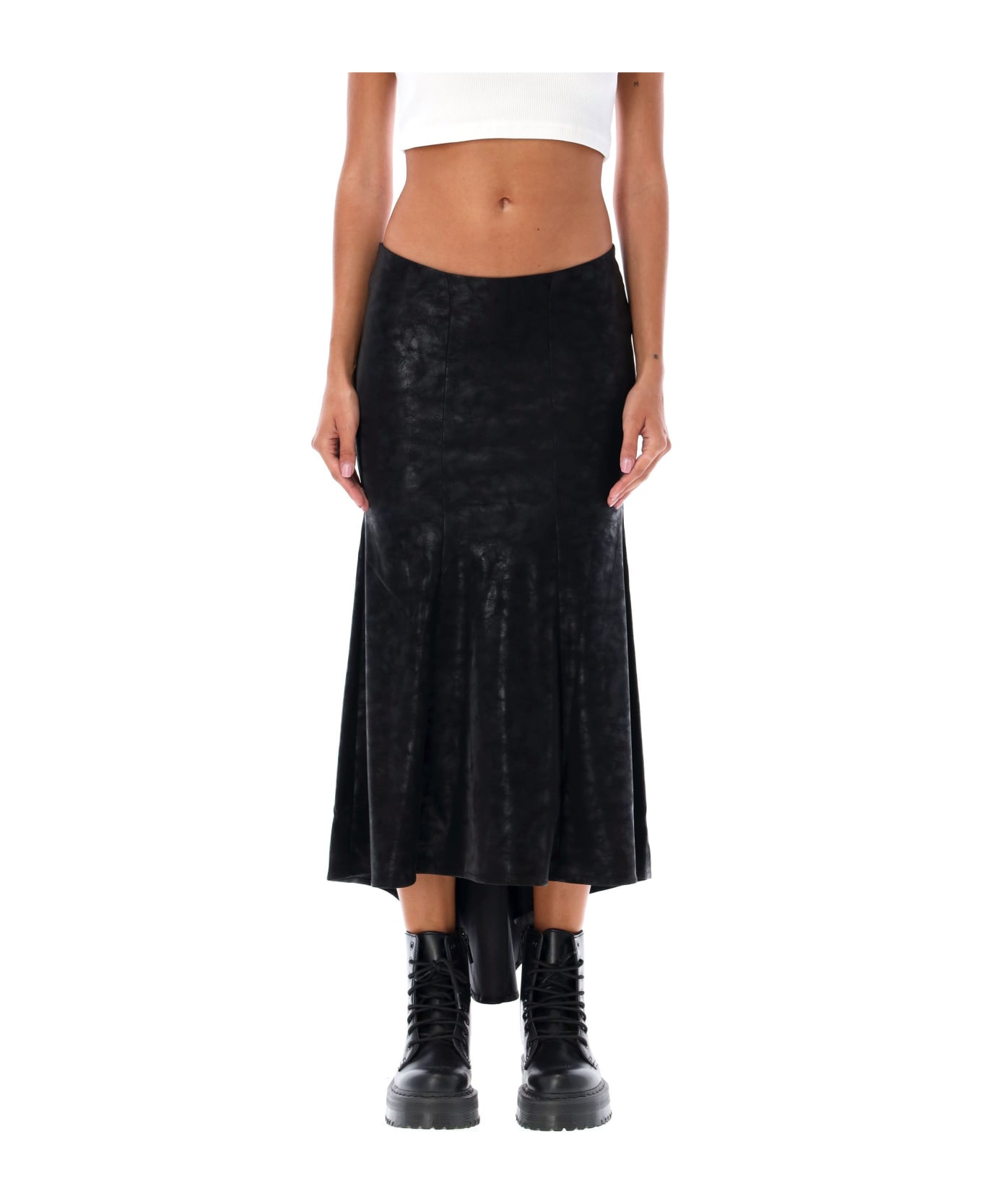 Midi Skirt In Faux Leather By Misbhv. Featuring: Low-rise Back Zip Closure Faux Leather Curved Hem Flared Model Is 1,72 M Tall And He Is Wearing Size S