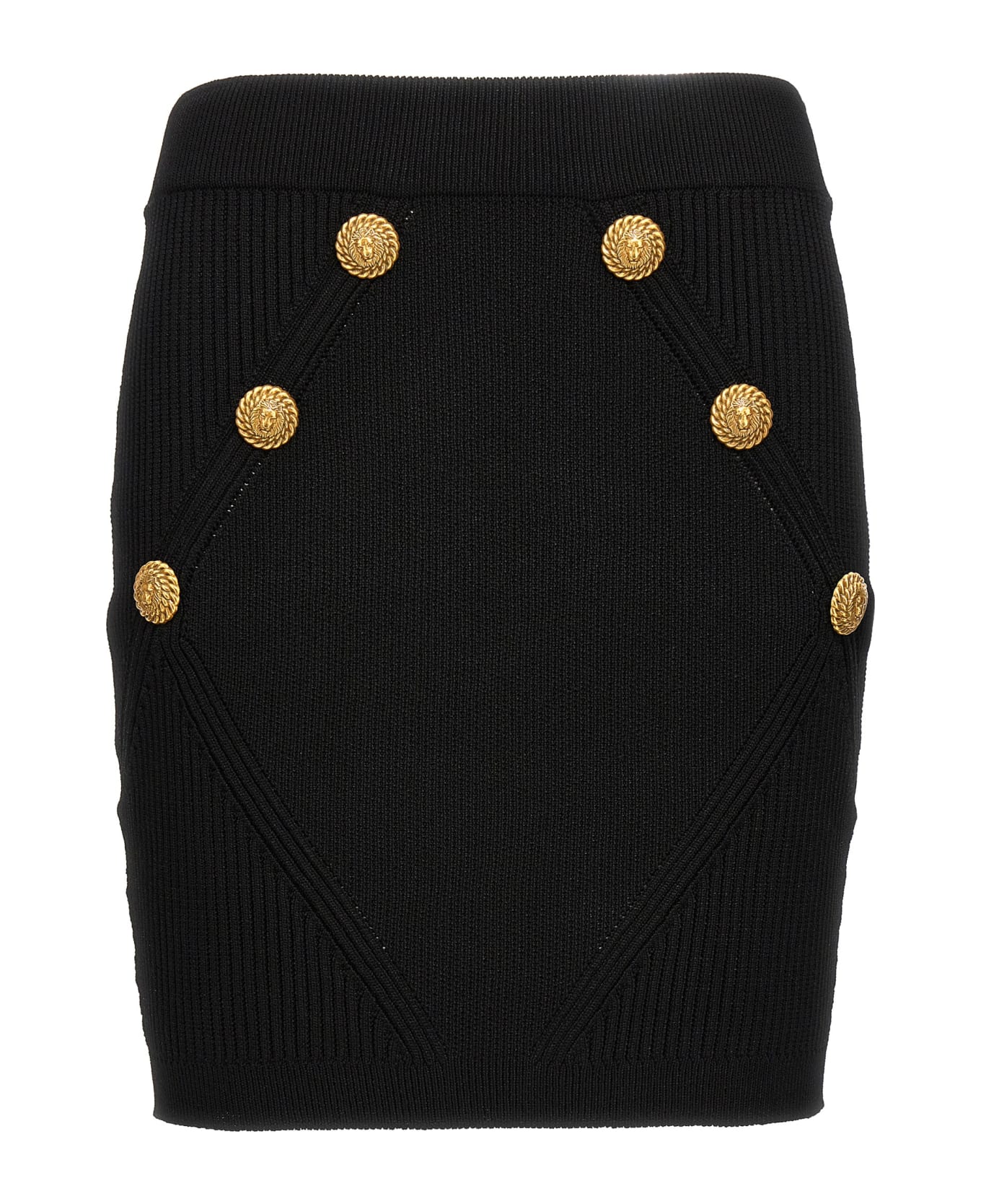 Knitted mini skirt with gold logo buttons. Composition: 84% viscose, 16% polyester