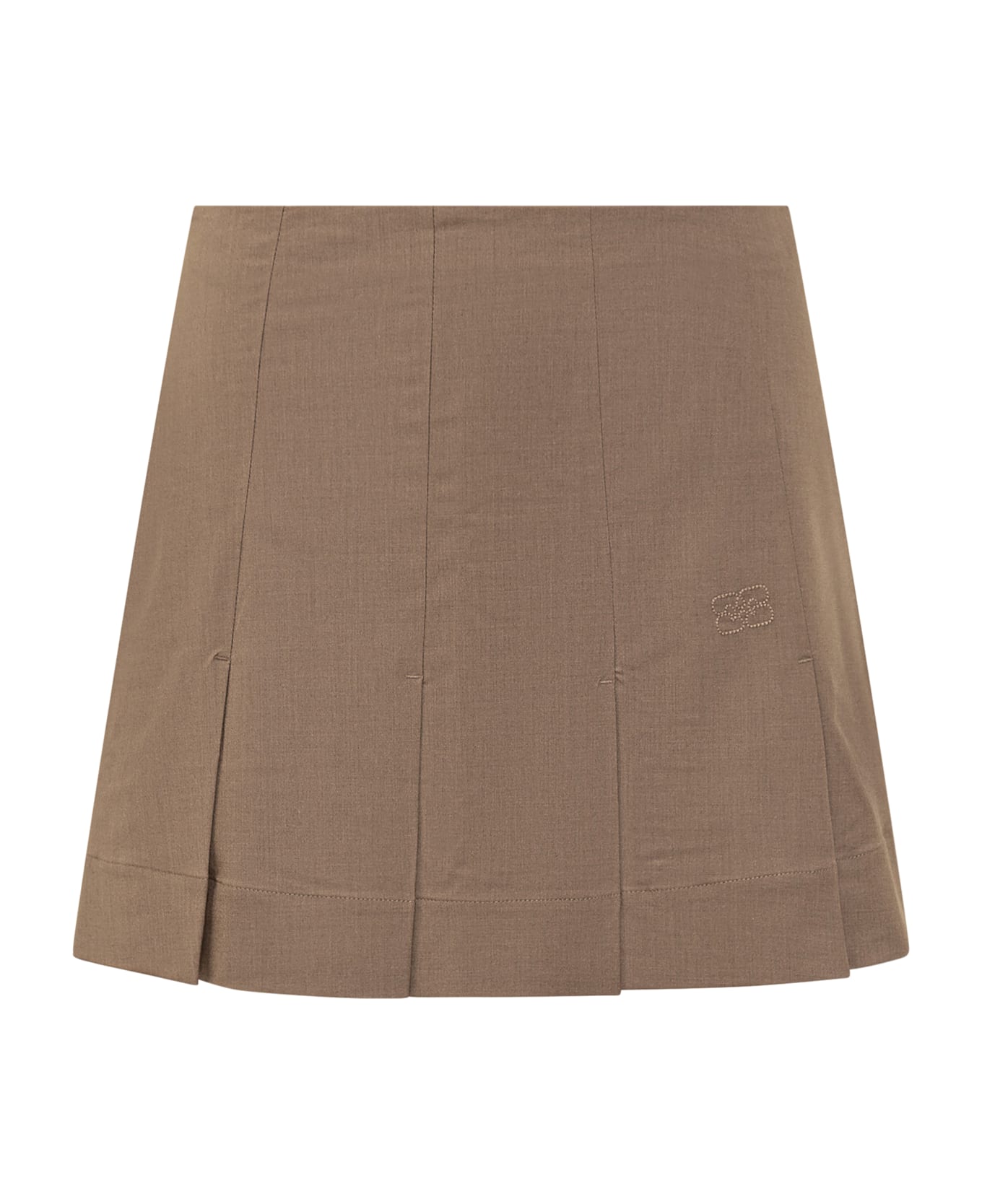Mini skirt with pleats. Closure with side zip and strap. Embroidered Ganni Butterfly logo on the front. Composition: 48% Viscose, 47% Polyester, 5% Elastane