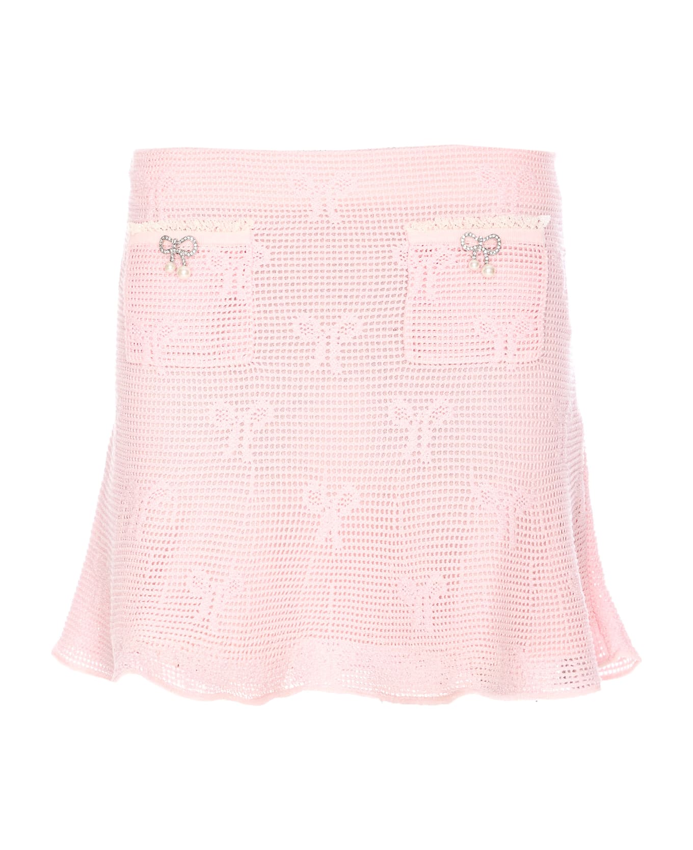 Self Portrait pink mini skirt, elasticized on waist, applicatio detail on the front, embroidered bow details
