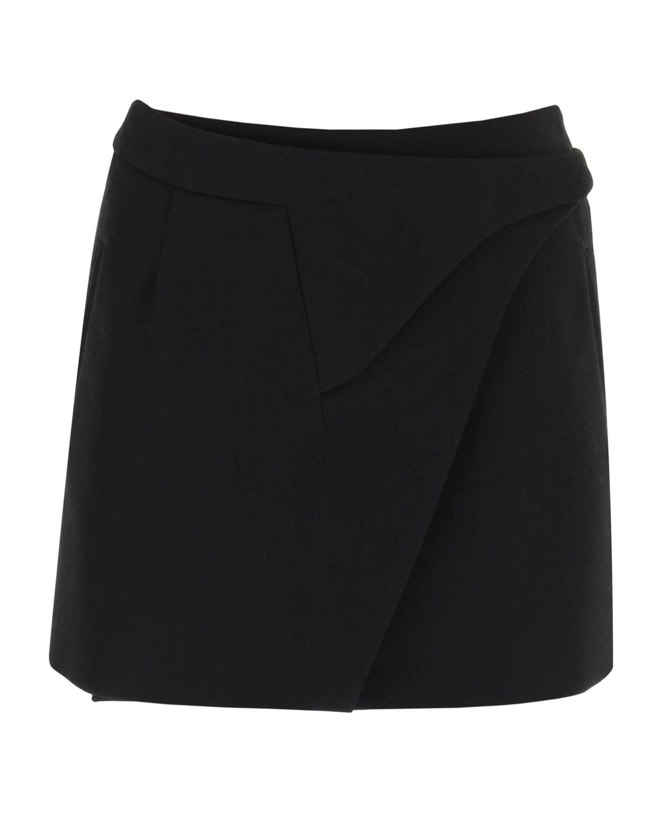 Wardrobe. NYC mini skirt crafted in solid virgin wool. Characterized by a wrap construction, this model features adjustable strap with metal buckle closure on the left hip, side slanted pockets and back welt pockets. Lined interior. Fitted. The model is 177 cm tall and wears size S.
