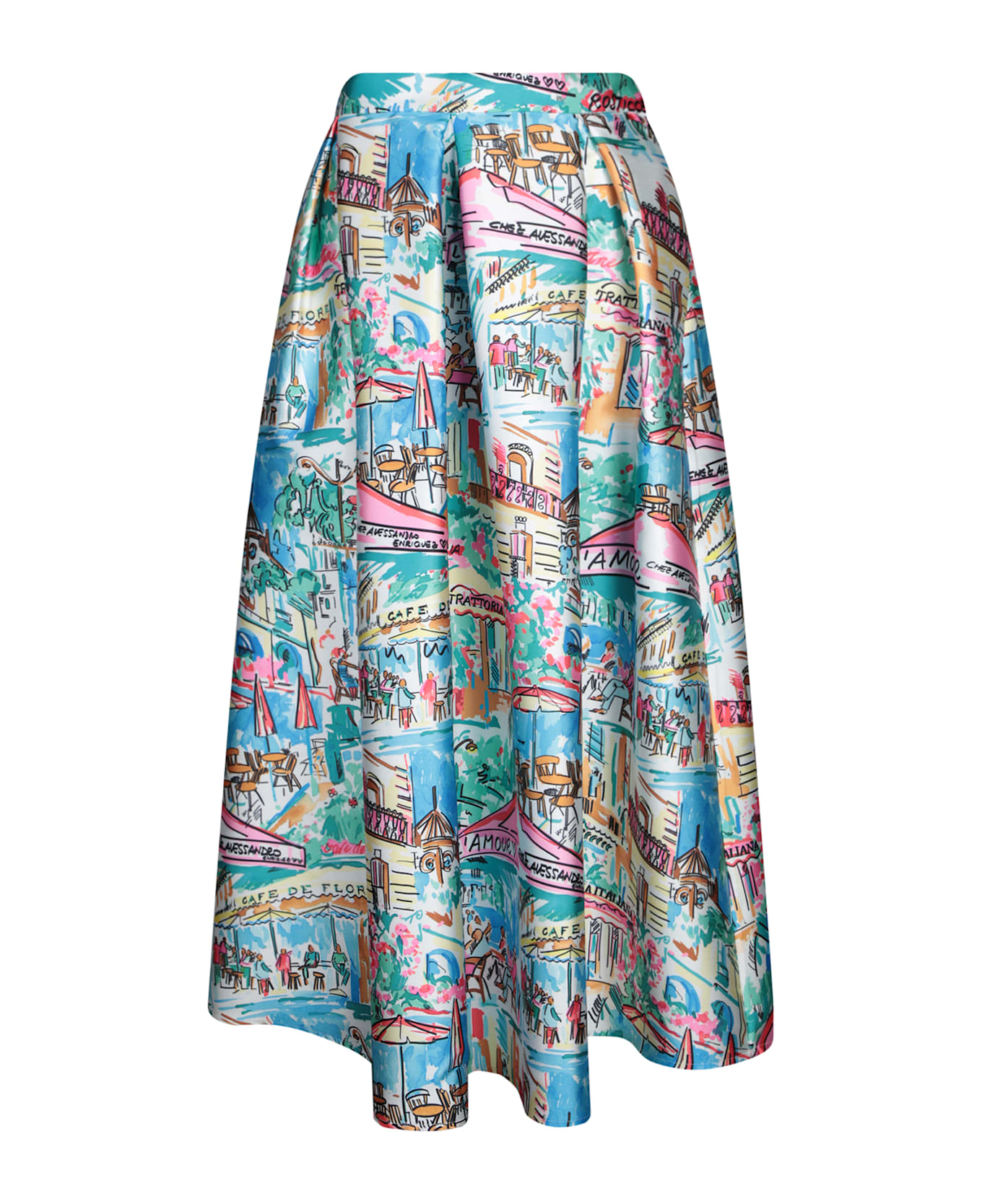 This Alessandro Enriquez skirt features a vibrant Parisian café-inspired design, perfect for a sophisticated yet youthful look. The high waist and soft fabric ensure both comfort and style.