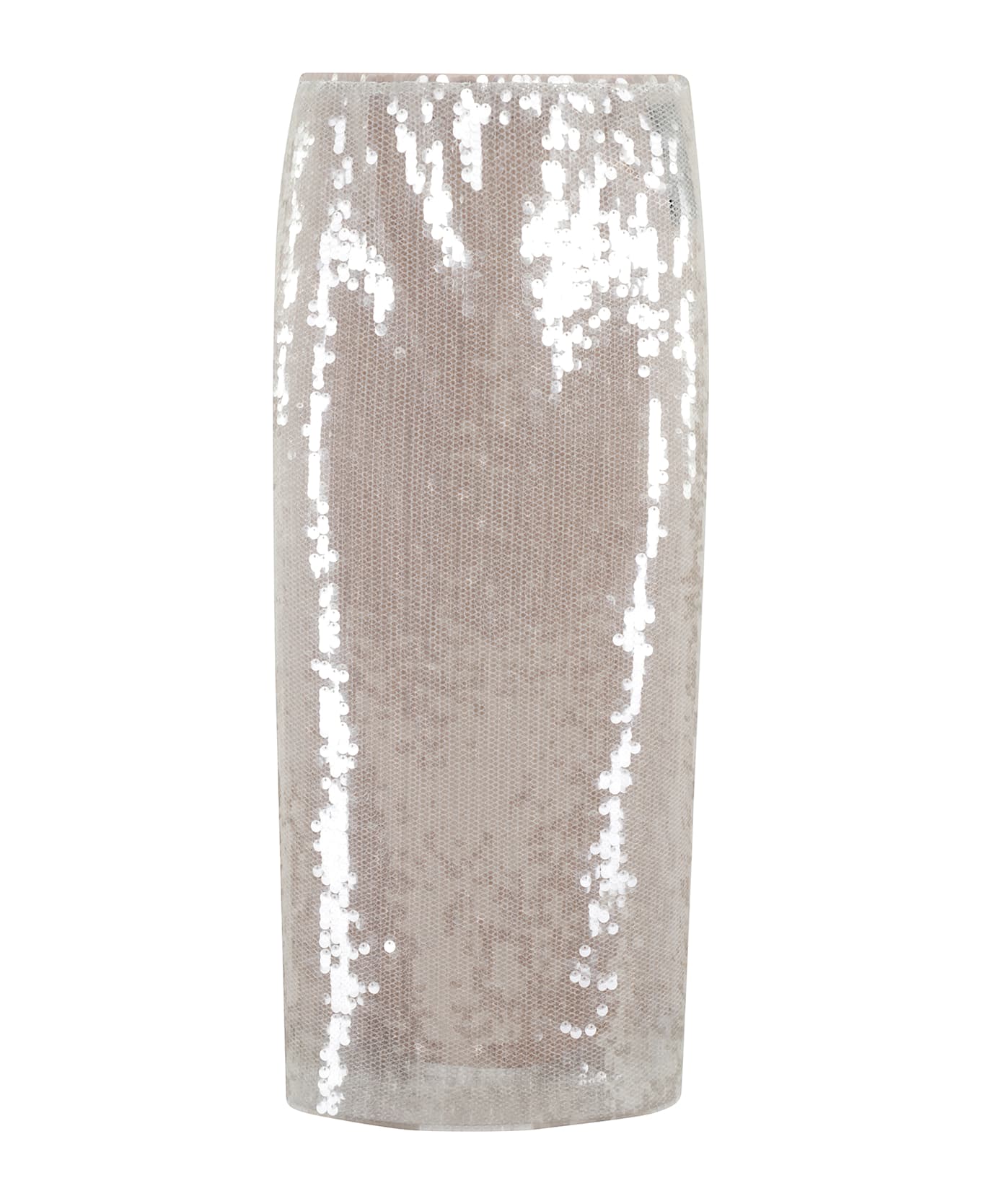 Sequined Mesh Skirt - Federica Tosi - White color - Mesh fabric with all-over sequins - Removable nude underskirt - Straight line with back slit - Regular fit