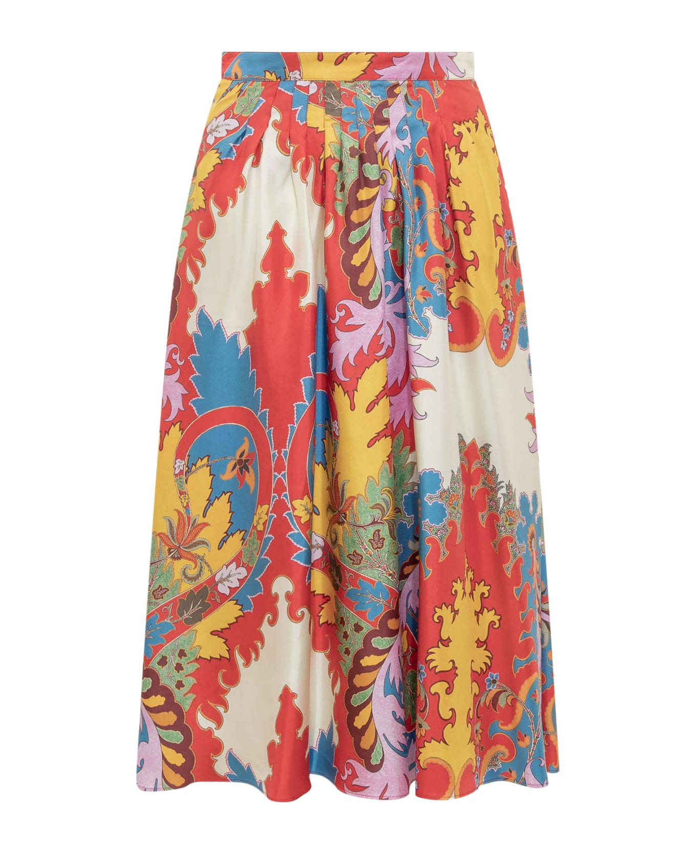 Multicolored midi skirt. Zip closure on the back. Fold on the front and back. Two side pockets. Two side pockets. All-over Paisley pattern. Composition: 100% Silk