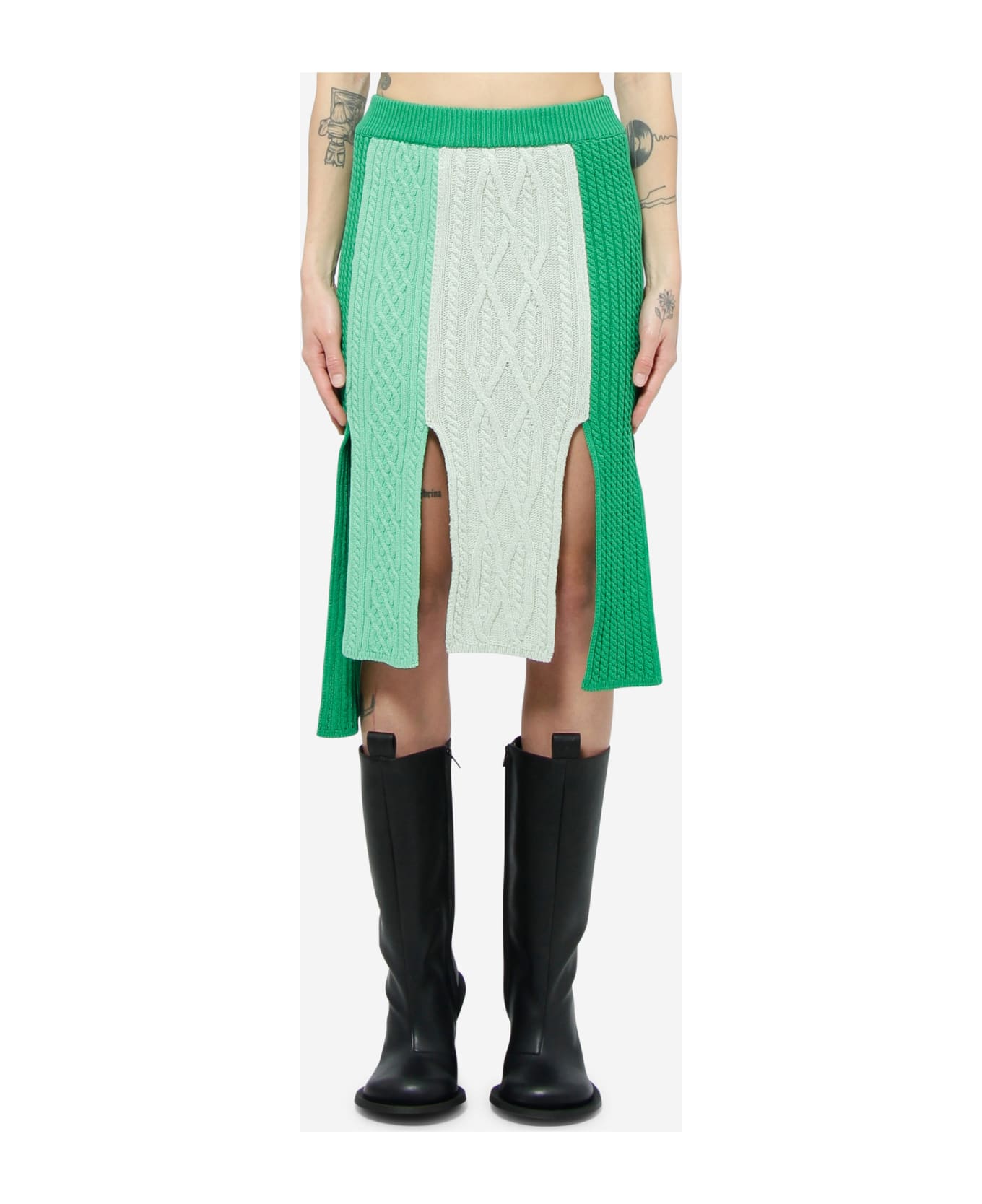PAOLA Skirt in green cotton, elasticized, high rise, contrast panels