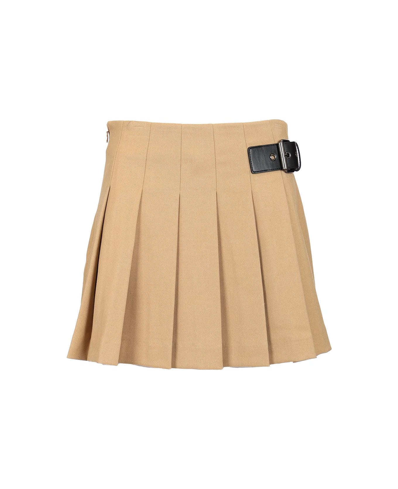 Pleated mini skirt by Dunst, with zipper and side buckle decoration.
