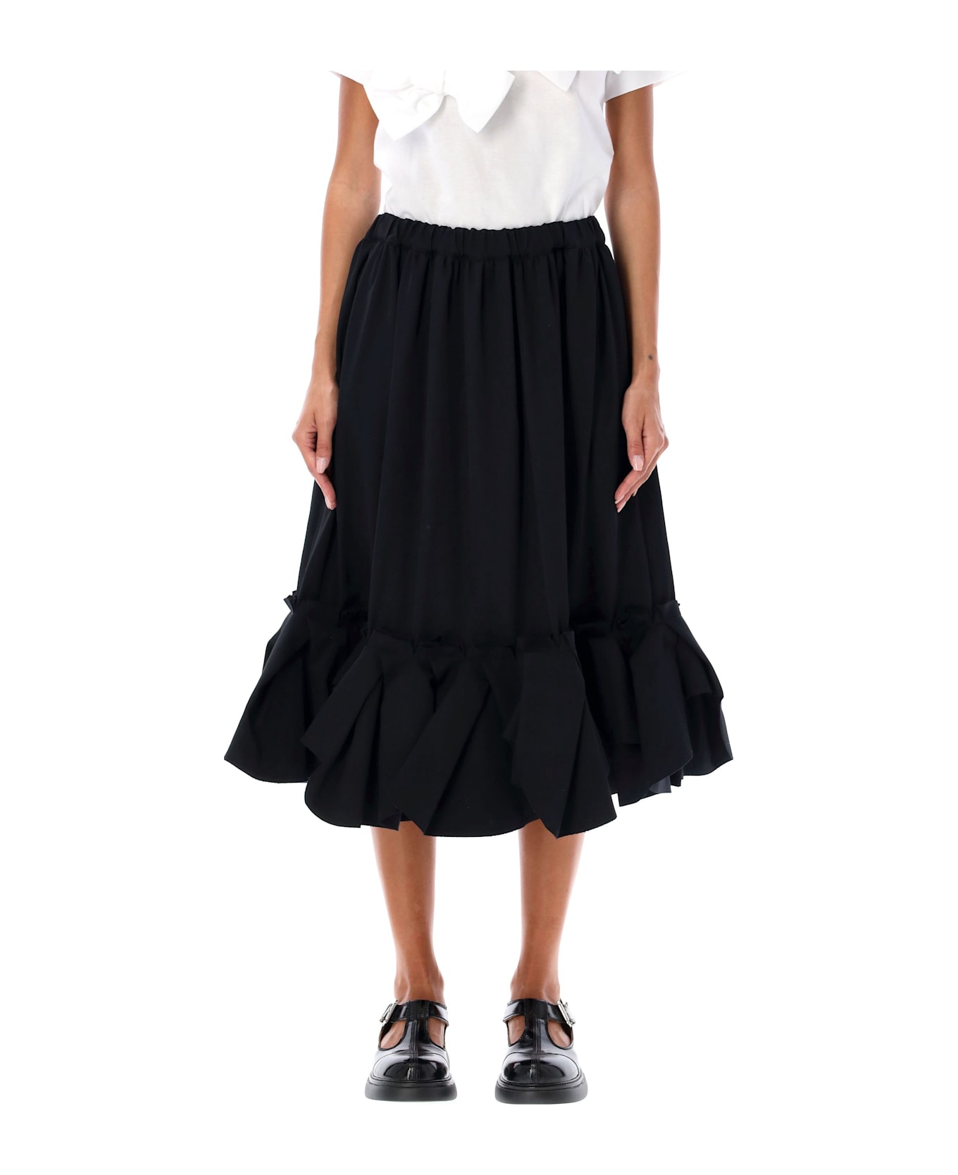 Wool Pleated Ruffle Hem Midi Skirt By Comme Des Garçons. Featuring: